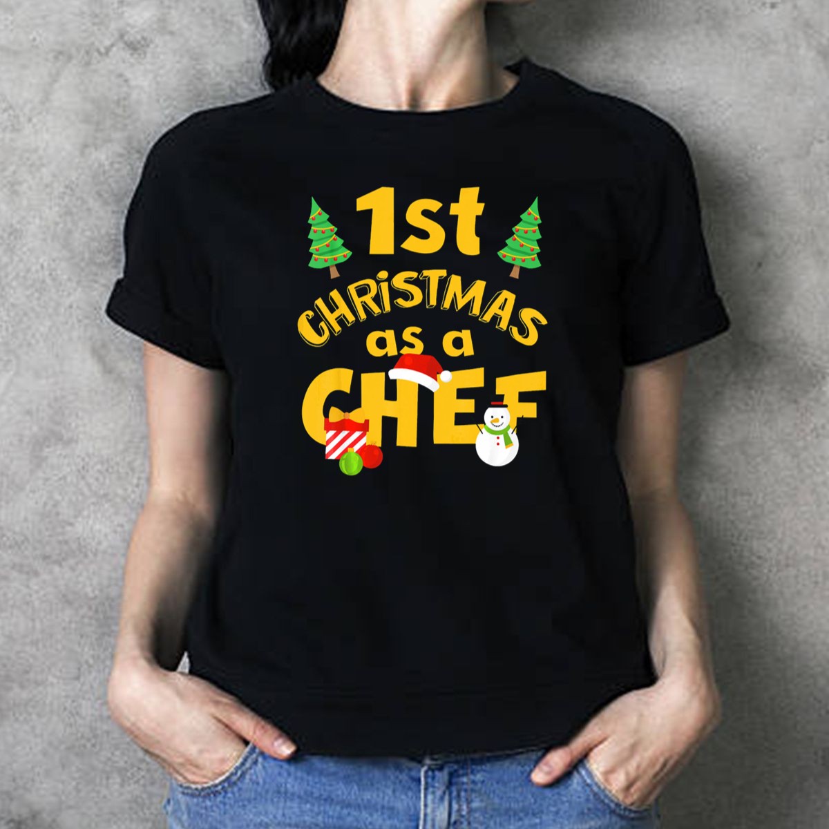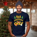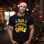 Celebrate your first Christmas as a chef with our delightful “1st Christmas As A Chef With Santa Hat Snowman Gift And Ornaments” T-shirt! Perfect for culinary enthusiasts and festive spirits alike, this shirt adds a touch of holiday cheer to your casual wardrobe. Whether you’re whipping up holiday treats in the kitchen or attending themed events, this fan-made design printed in the USA is sure to spread joy and warmth during the festive season.