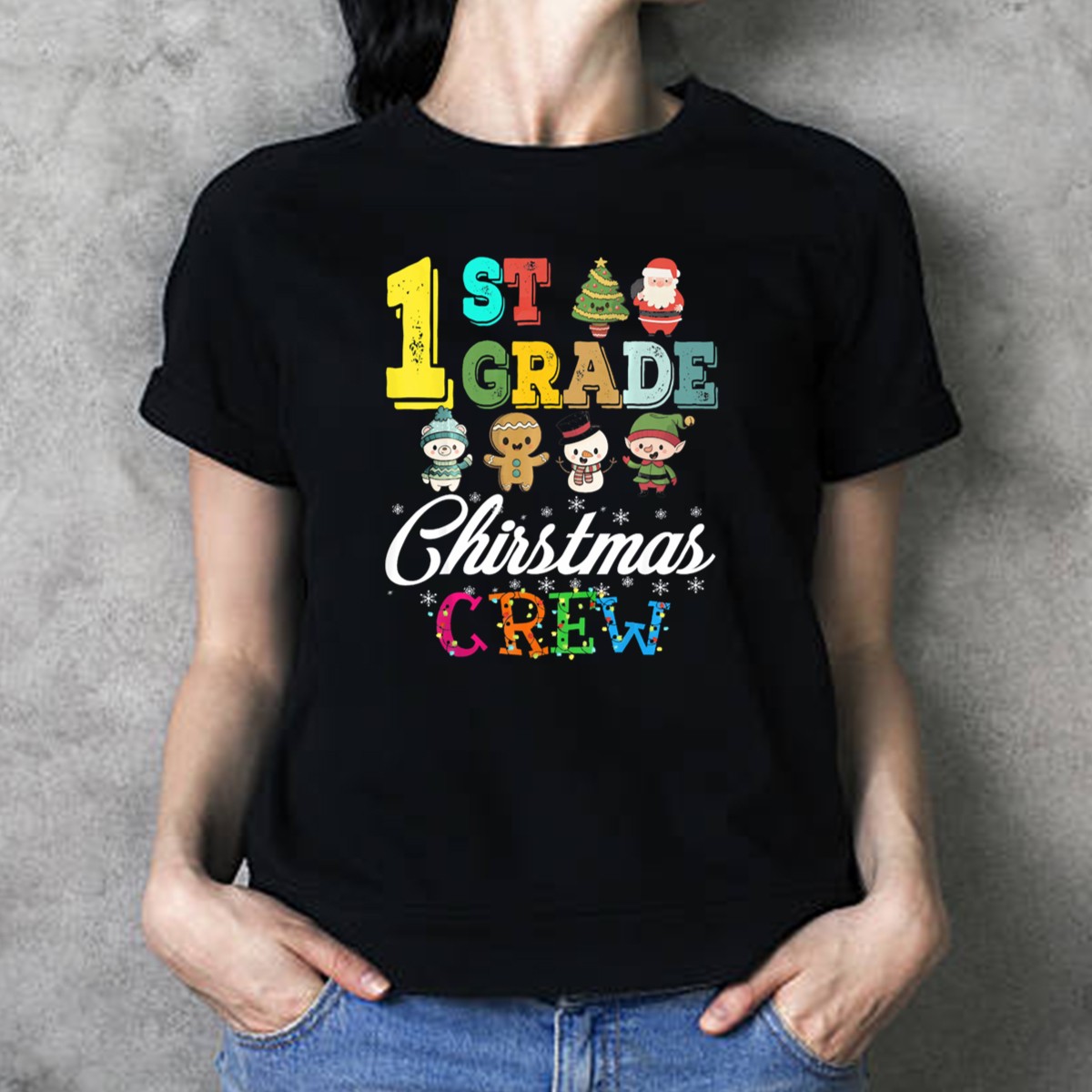 Celebrate the joy of the holiday season with our 1St Grade Christmas Crew T-Shirt! Perfect for little ones who love Santa, gingerbread, snowmen, and elves, this festive shirt is an ideal choice for themed events, family gatherings, or simply spreading cheer during daily wear. Crafted with a fan-made design printed right here in the USA, it combines comfort and fun, making it a unique addition to your child’s wardrobe.