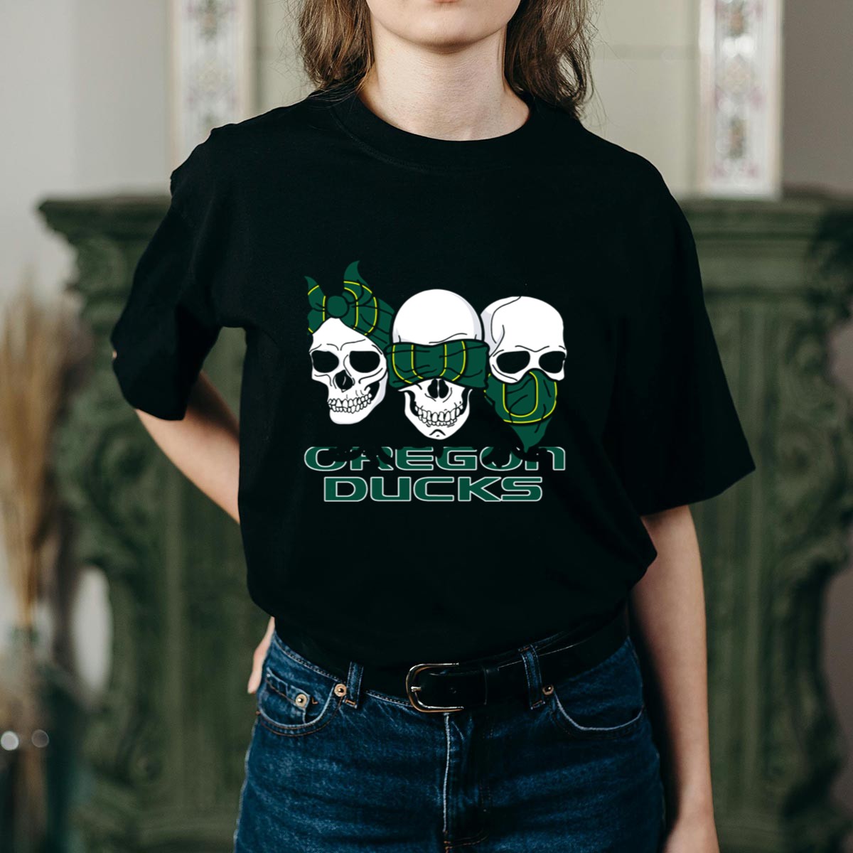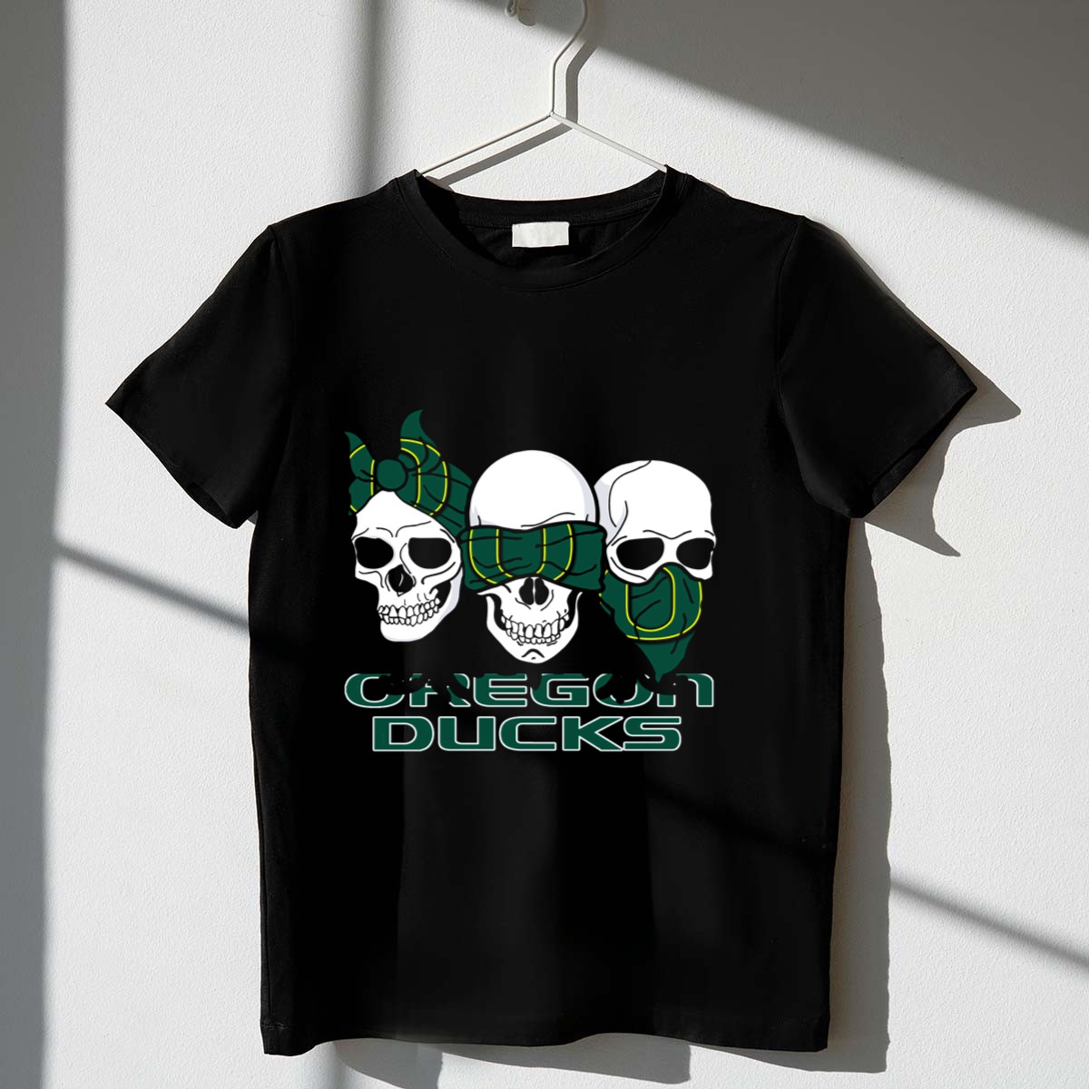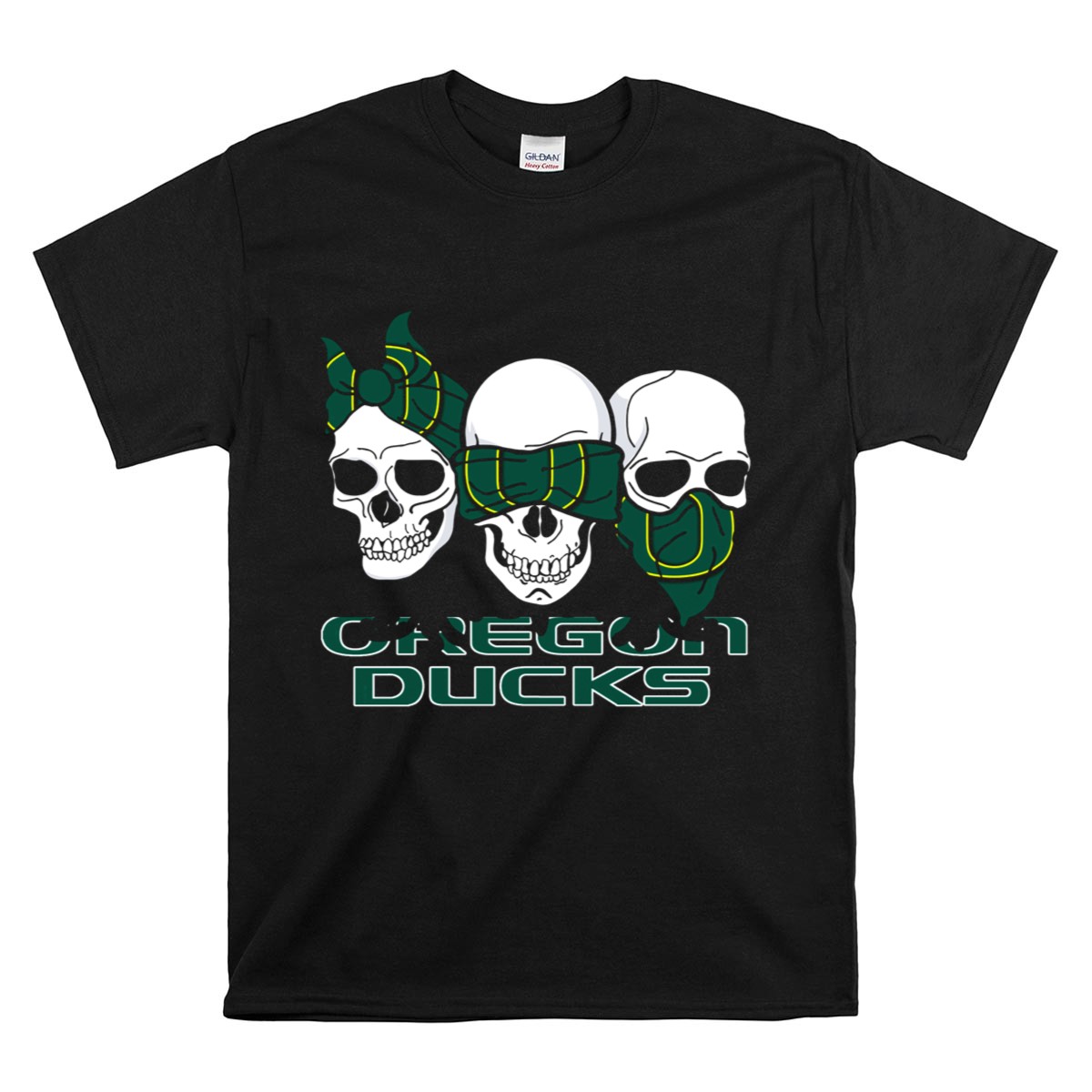 Show off your team spirit with our 3 Skull Oregon Ducks Bandana T-Shirt, designed for passionate fans who want to make a bold statement. Perfect for casual outings, themed events, or just lounging at home, this shirt combines comfort with a striking graphic that showcases your love for the Oregon Ducks. Made in the USA and featuring a fan-made design, it’s a unique addition to any fan’s wardrobe.