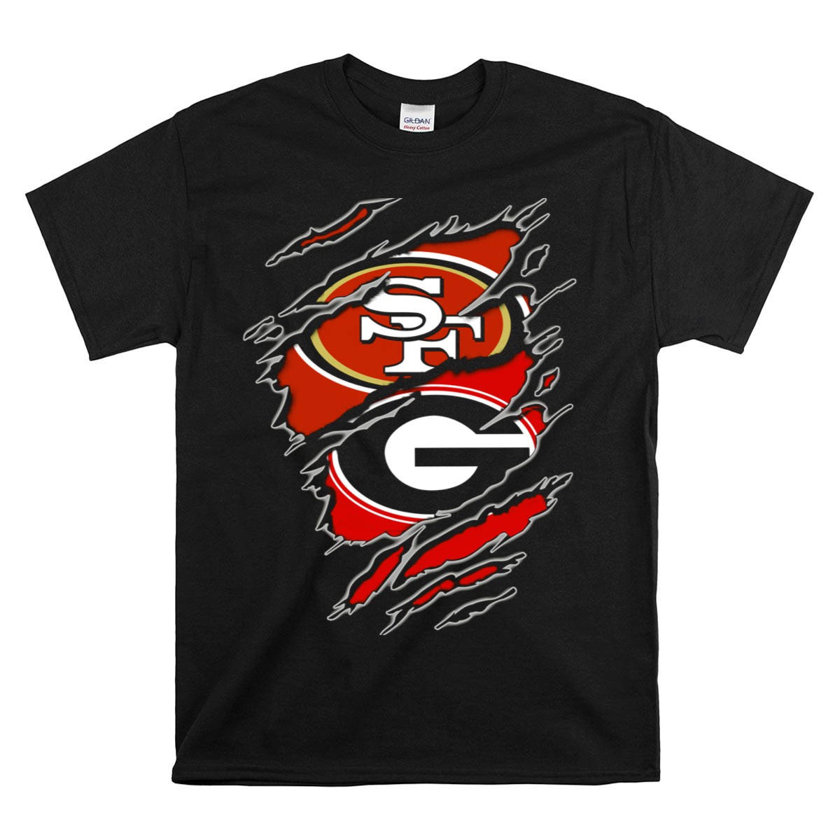 Show your team spirit with our fan-made 49ers Georgia Bulldogs SF and G Logo Merge T-Shirt! This unique design is perfect for passionate supporters of both teams, making it an ideal choice for casual outings, themed events, or daily wear. Crafted with comfort in mind, this shirt combines style, softness, and durability, ensuring you stay cool and comfortable while showcasing your love for the Bulldogs and 49ers. Printed with pride in the USA, it’s a must-have addition to your game day wardrobe!
