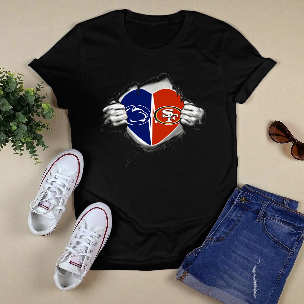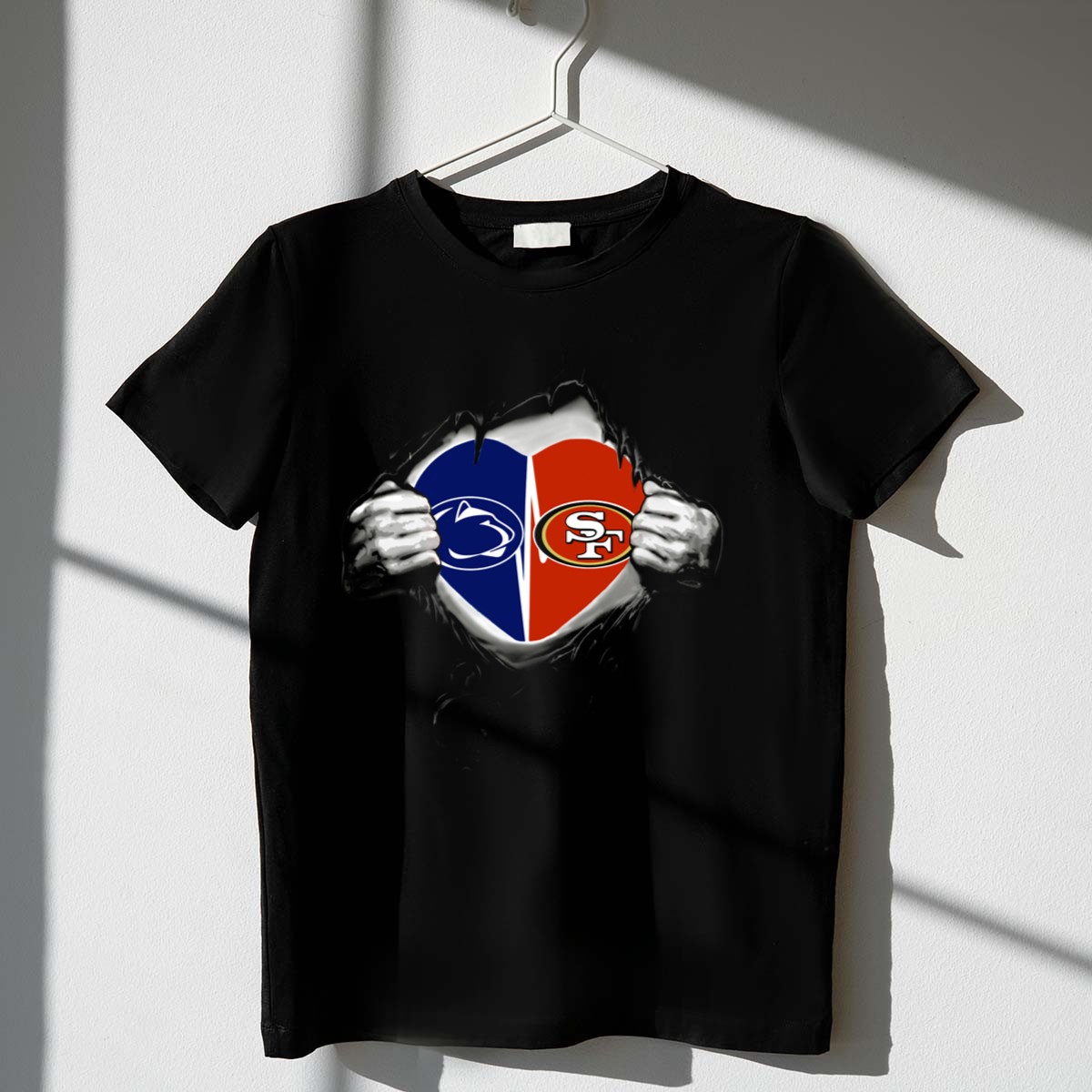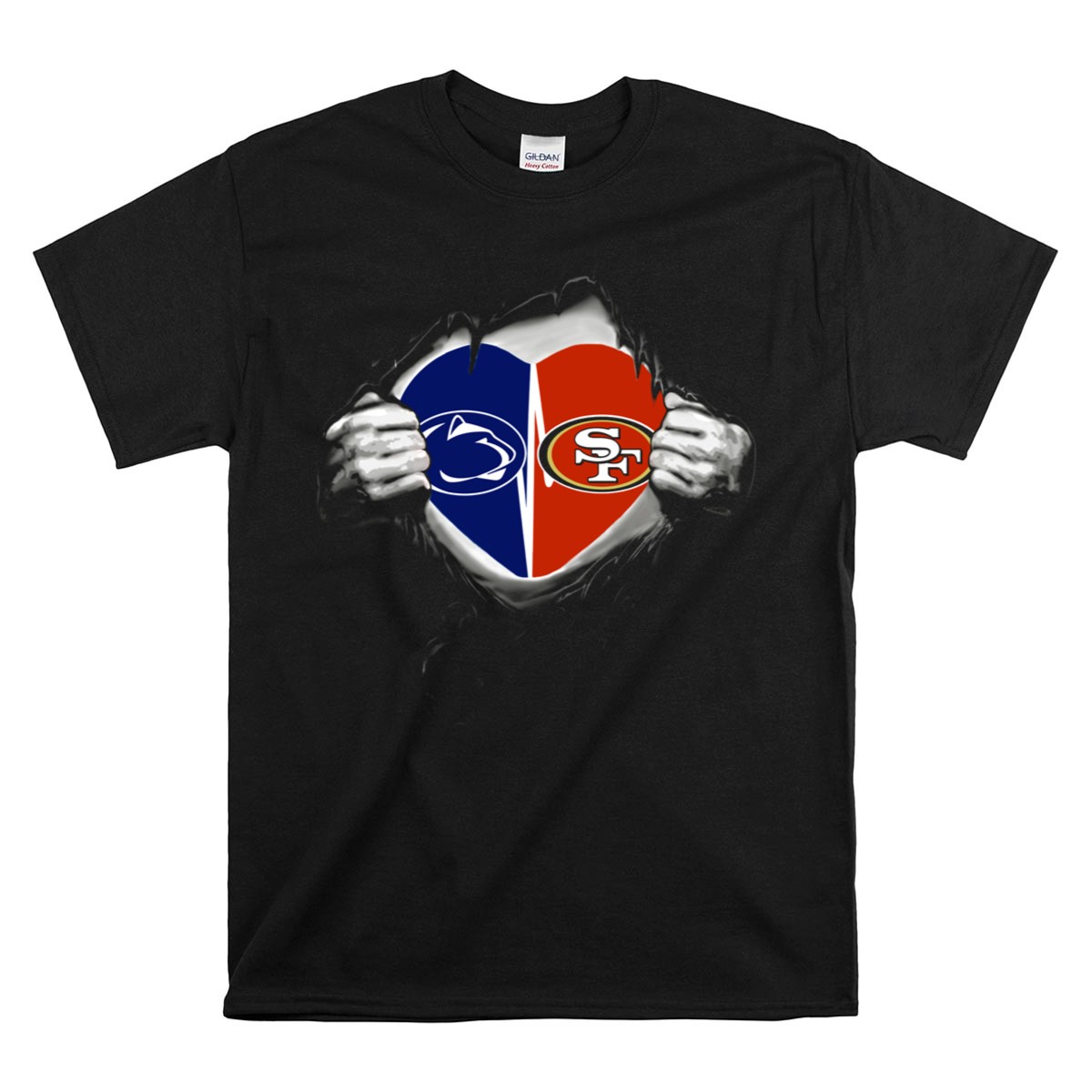 Show your team spirit and love for the game with our 49ers San Francisco Heart Penn State Nittany Lions Logo T-Shirt! This fan-made design is perfect for devoted sports enthusiasts who want to showcase their loyalty while staying comfortable. Whether you’re cheering from the stands, attending a themed event, or enjoying a casual day out, this classic fit T-shirt delivers both style and comfort. Proudly printed in the USA, it’s a must-have addition to your wardrobe for all-season wear.