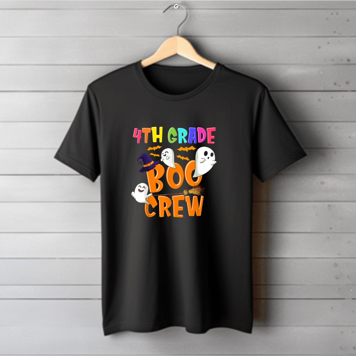 Celebrate the spooky season in style with our 4th Grade Boo Crew Halloween Ghosts and Witch Hat T-Shirt! Perfect for kids who love to embrace the Halloween spirit, this fun and festive tee is ideal for trick-or-treating, classroom parties, or just hanging out with friends. With its playful design featuring adorable ghosts and a whimsical witch hat, this shirt is sure to be a hit among young ghouls and goblins. Made for comfort and durability, it’s the perfect choice for all their Halloween adventures!