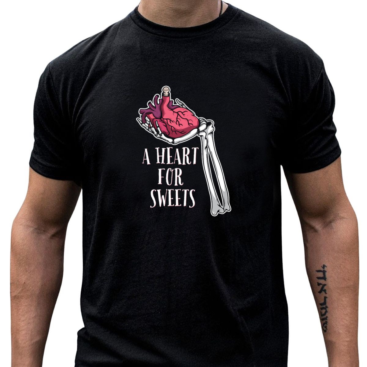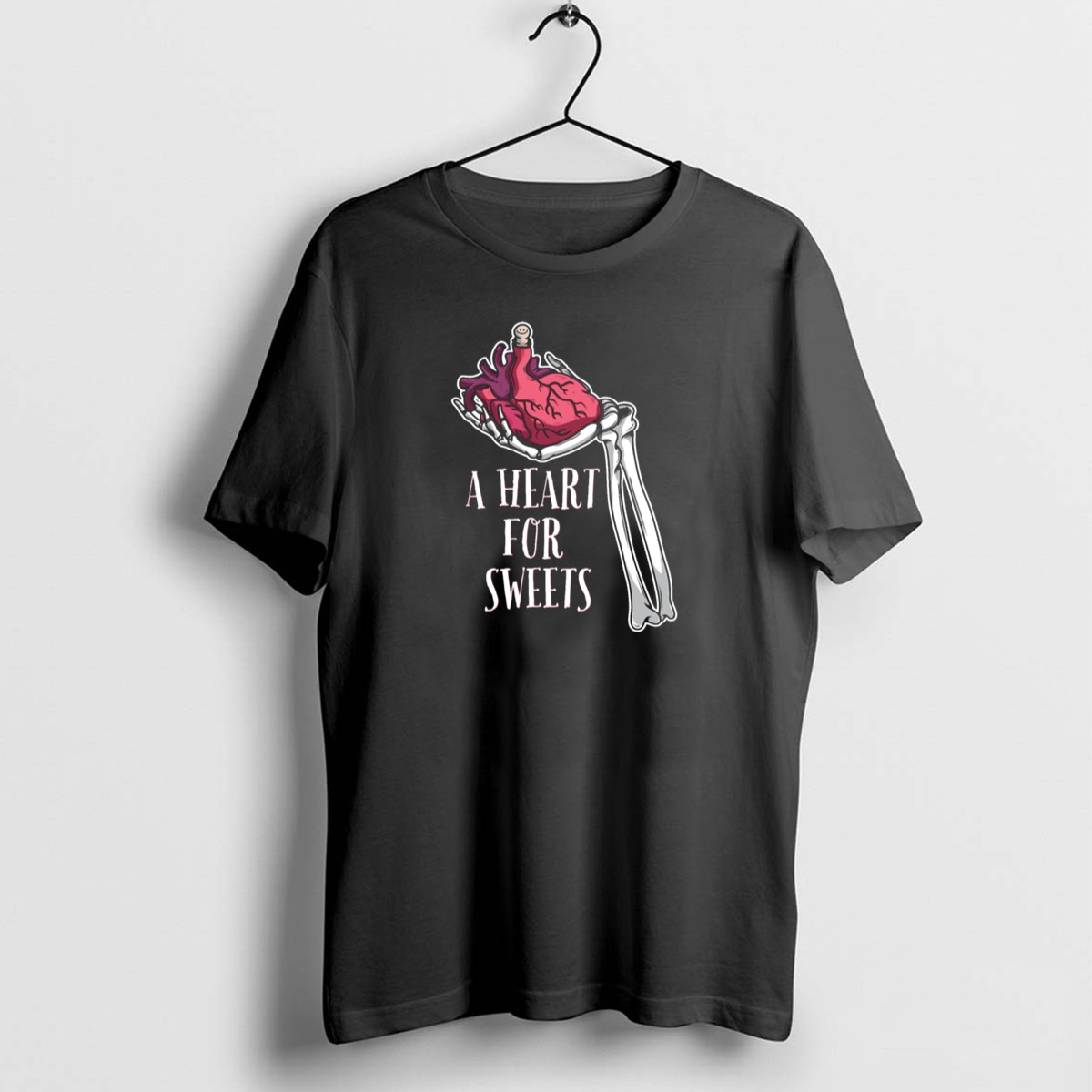 Celebrate the spooky season with our A Heart For Sweets Halloween Skeleton Hand Heart T-Shirt! This uniquely designed shirt is perfect for those who love to mix a little fun with their festive attire. Ideal for casual wear, themed events, or just a cozy day out, this fan-made graphic tee showcases a playful twist on Halloween spirit. Made and printed in the USA, it’s a standout piece that combines comfort and style for all-season wear.