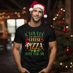 A Lovely Cheese Pizza Just For Me Christmas Reindeer Santa Hat Snowflakes T-Shirt