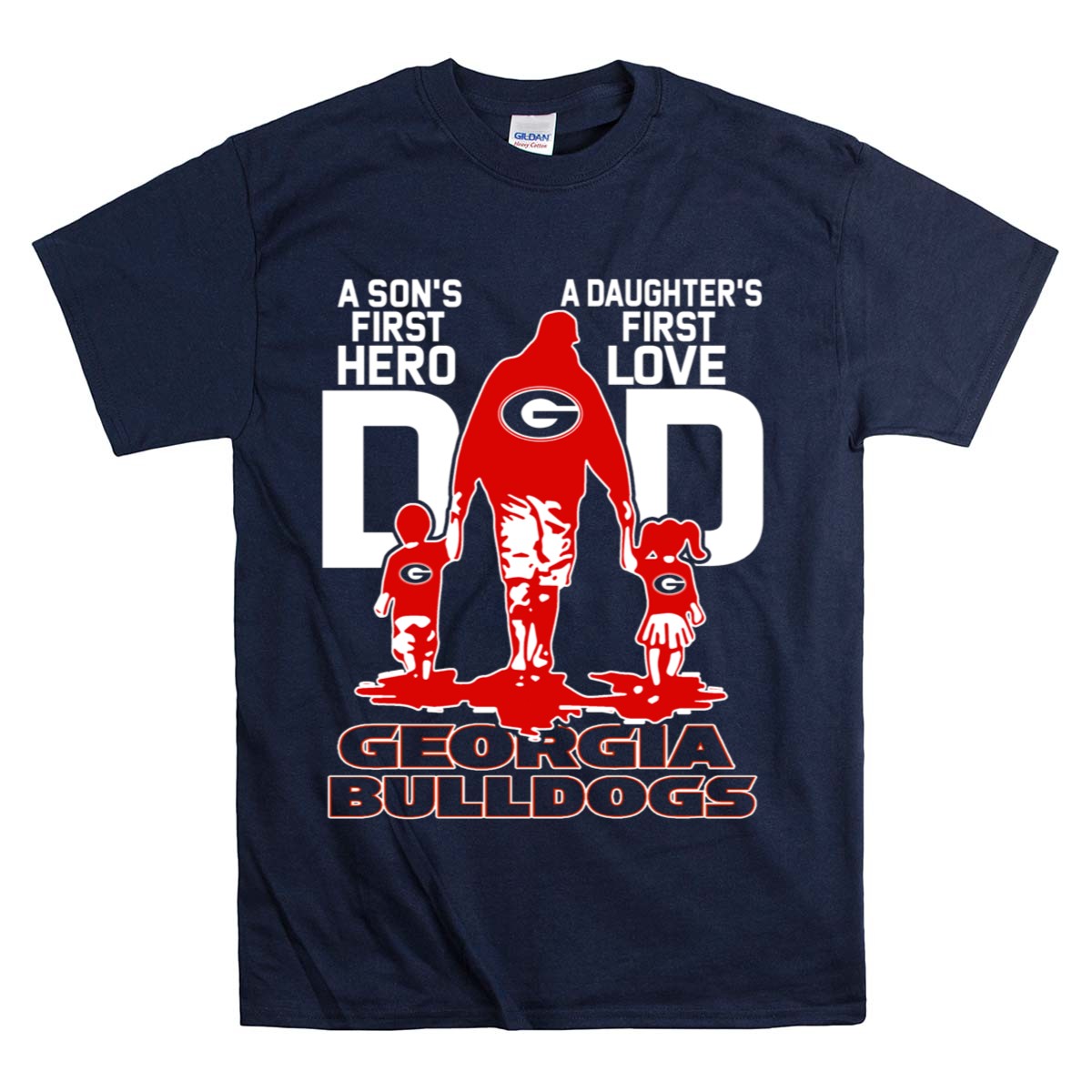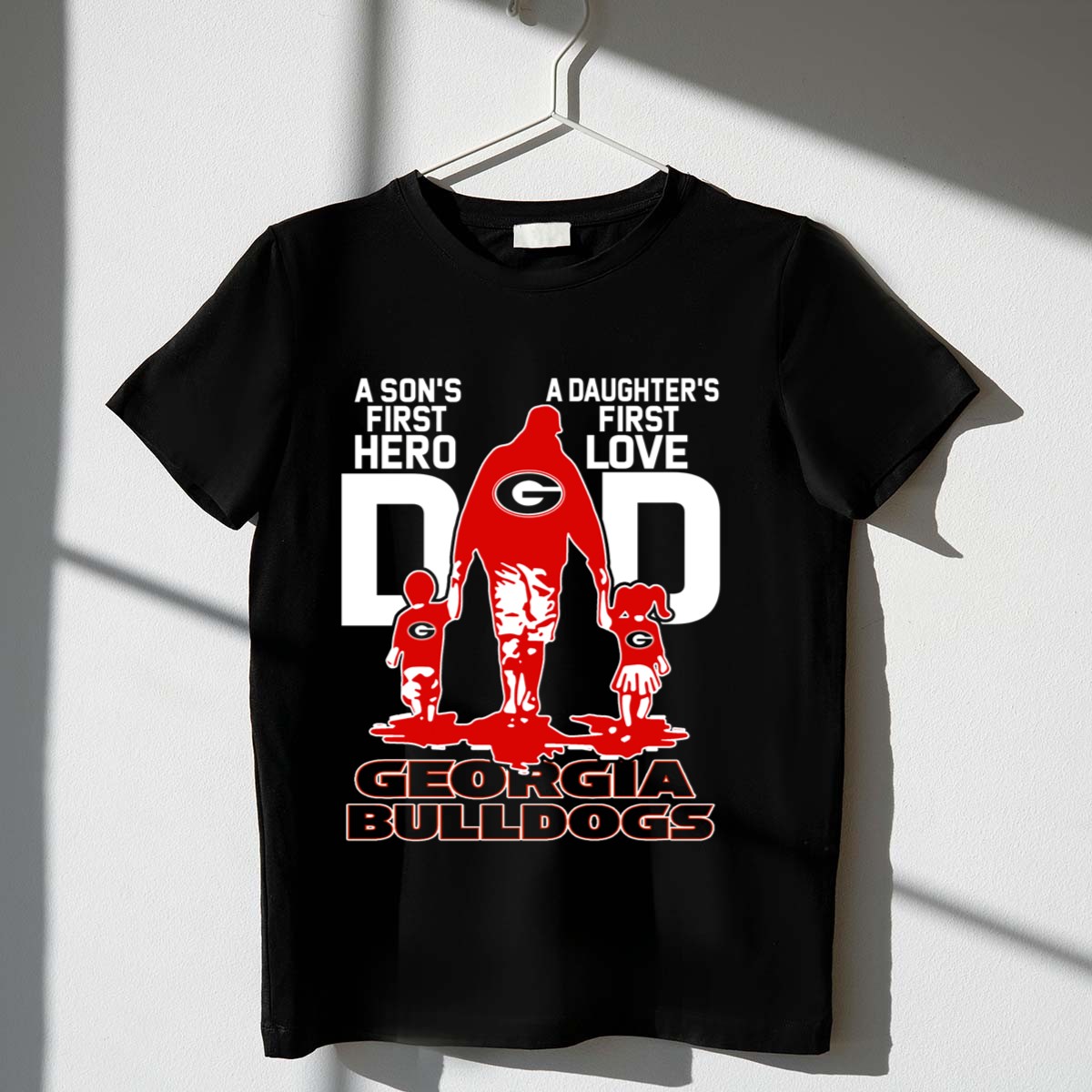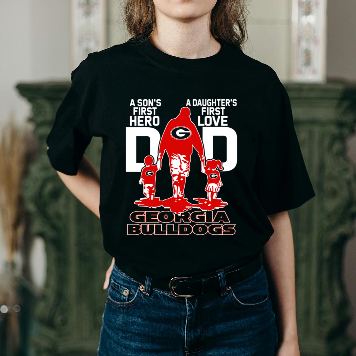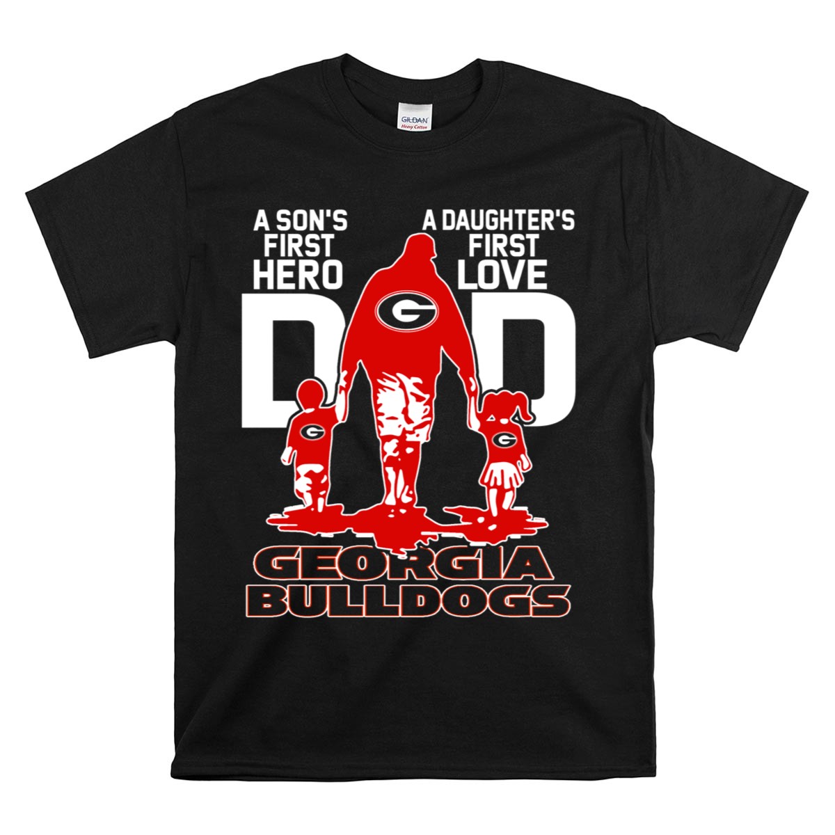 Celebrate the special bond between a father and his children with our “A Son’s First Hero, A Daughter’s First Love” Dad T-Shirt, featuring a vibrant Georgia Bulldogs graphic. This fan-made design is perfect for die-hard Bulldogs fans who want to showcase their pride while enjoying casual outings, themed events, or simply relaxing at home. Crafted for comfort and style, this shirt is a must-have for any proud dad looking to express his love and support for his team.