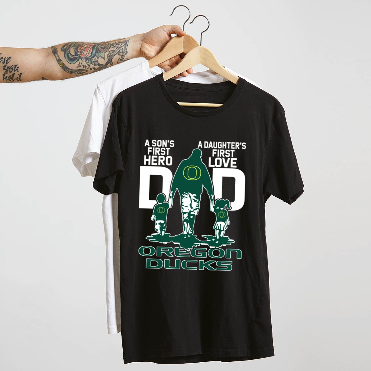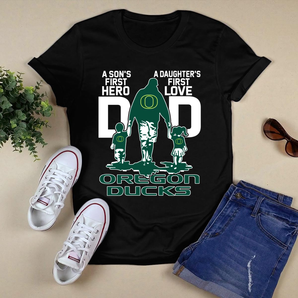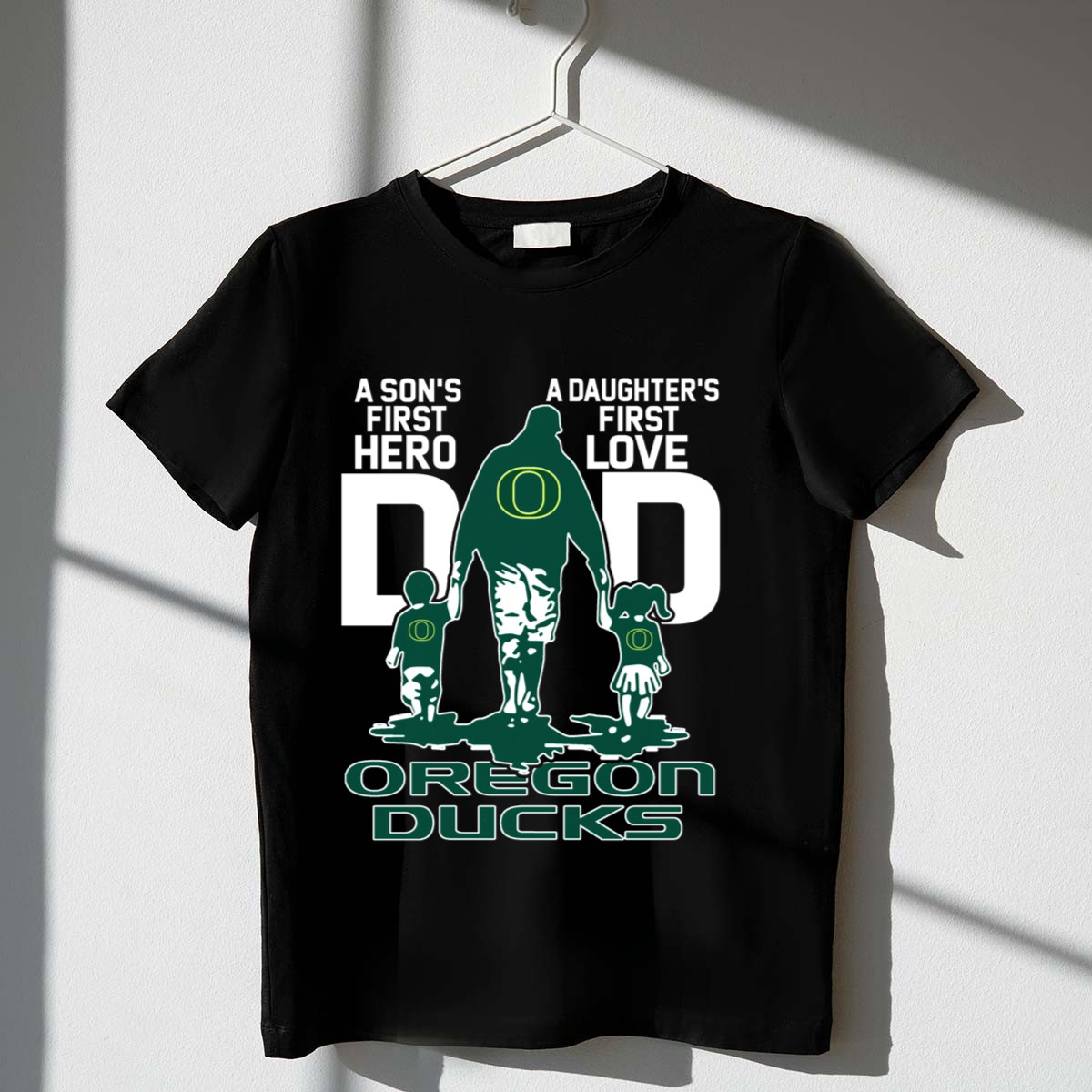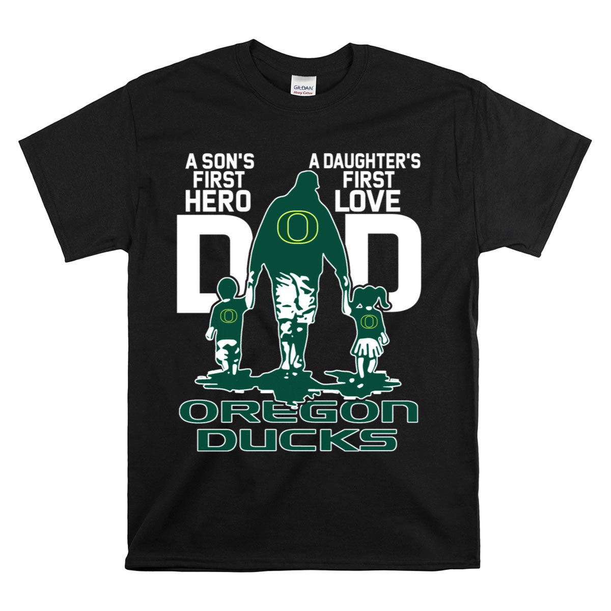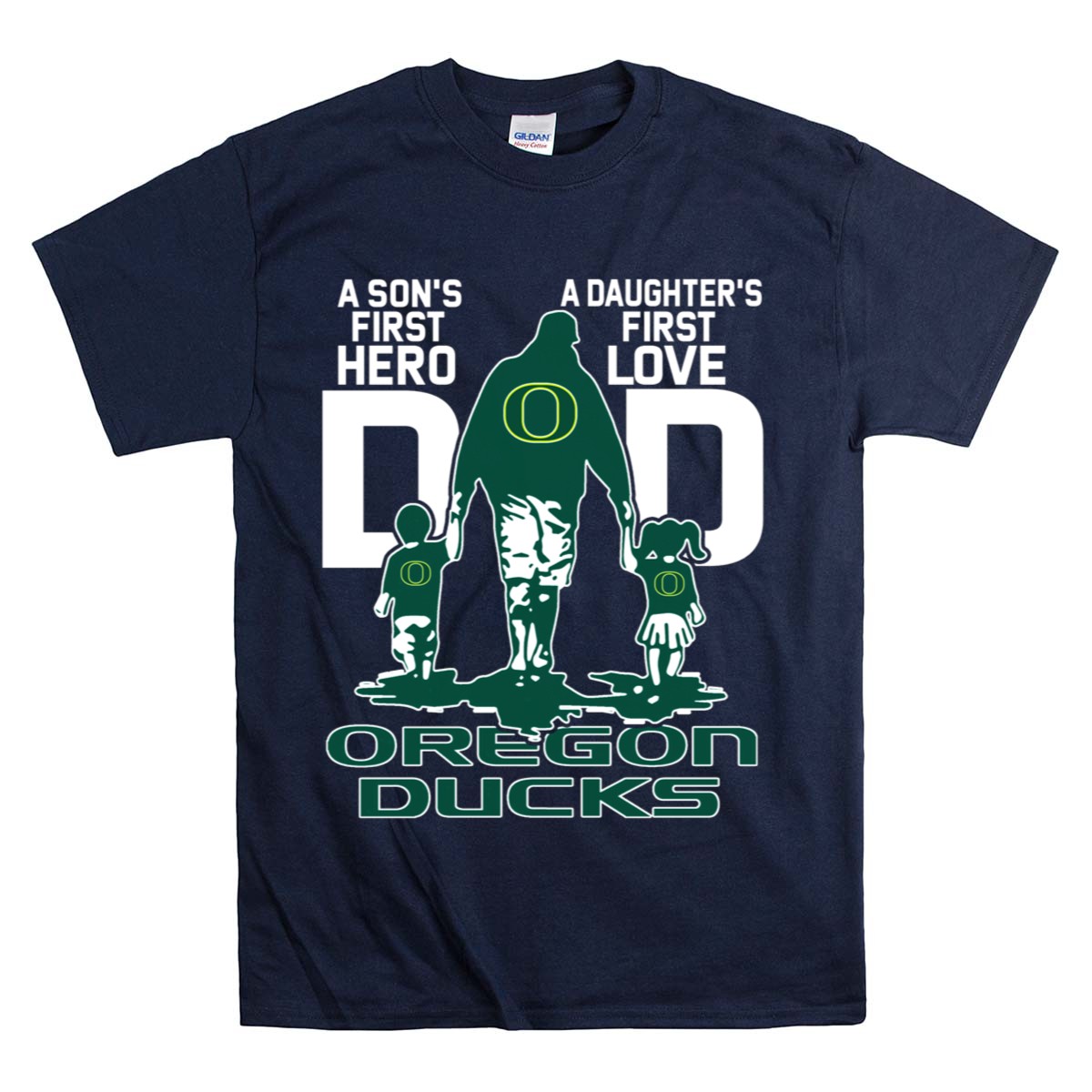 Celebrate the special bond between fathers and their children with our “A Son’s First Hero, A Daughter’s First Love” Dad Oregon Ducks T-Shirt. This fan-made design is perfect for proud dads who want to showcase their love for both their children and the Oregon Ducks. Ideal for casual outings, themed events, or daily wear, this shirt combines style and comfort, making it a must-have for any devoted fan. Printed in the USA, it’s a unique way to express your team spirit while cherishing those precious family moments.