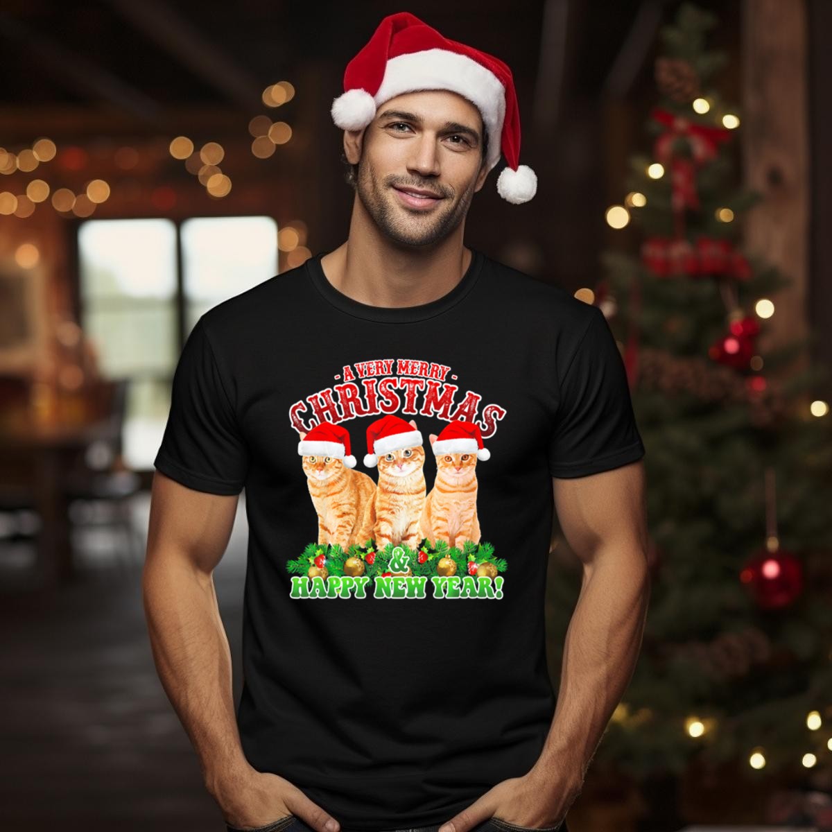 Celebrate the festive season with our delightful “A Very Merry Christmas And Happy New Year” Cats In Santa Hats T-Shirt! Perfect for cat lovers and holiday enthusiasts alike, this fun and whimsical design adds a touch of cheer to your casual wardrobe. Whether you’re attending a holiday gathering, themed event, or simply enjoying a cozy day at home, this shirt is sure to bring smiles and holiday spirit wherever you go. Made with care in the USA, it makes for a unique and thoughtful gift for friends and family who adore their furry companions!