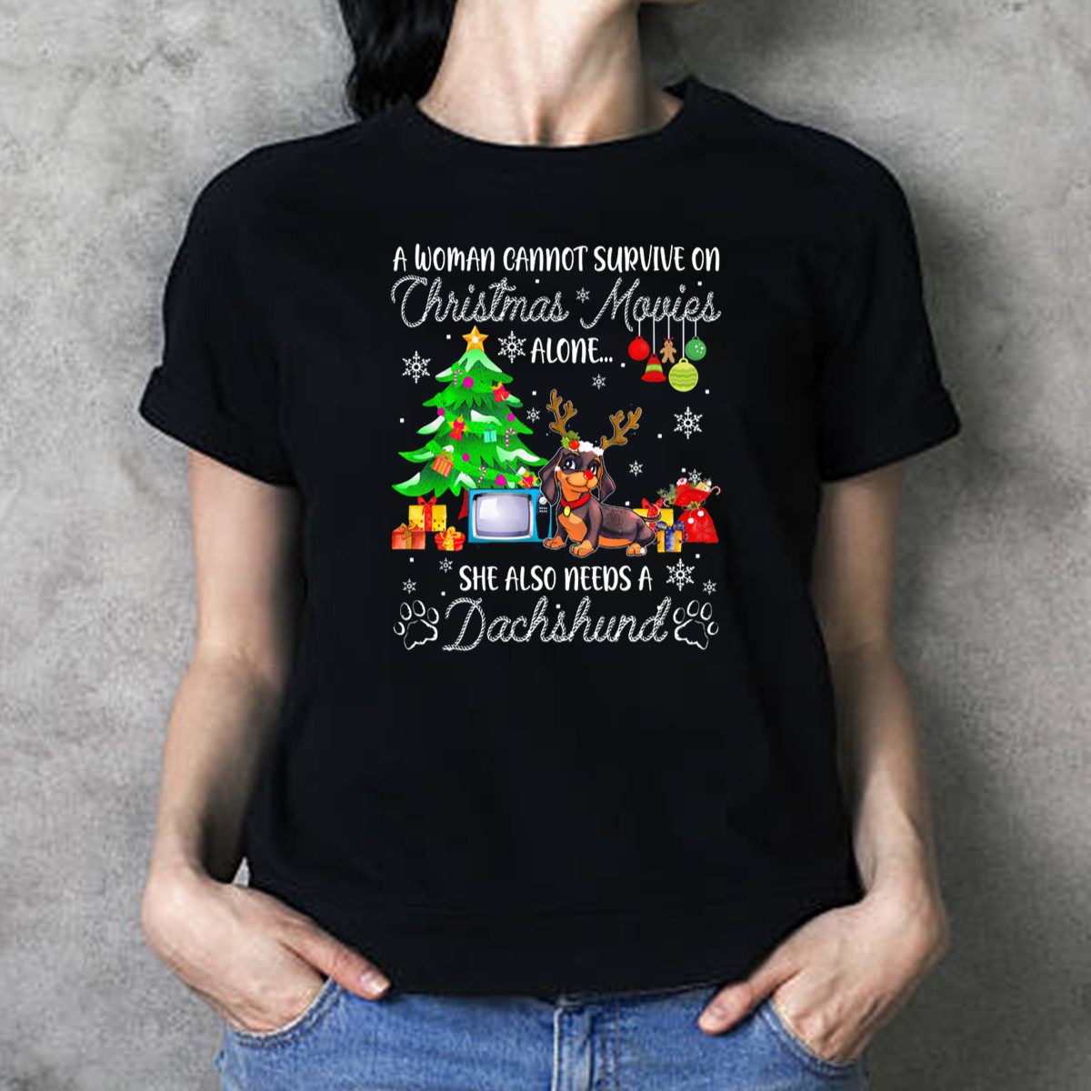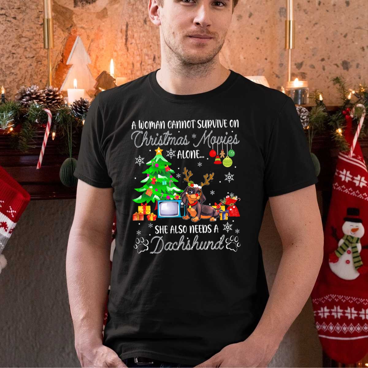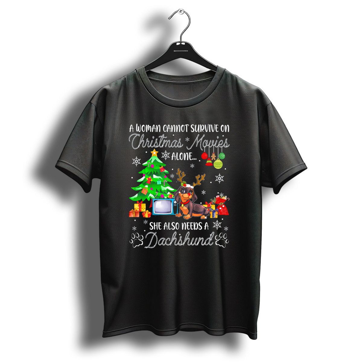 A Woman Cannot Survive On Christmas Movies Alone She Also Needs A Dachshund T-Shirt