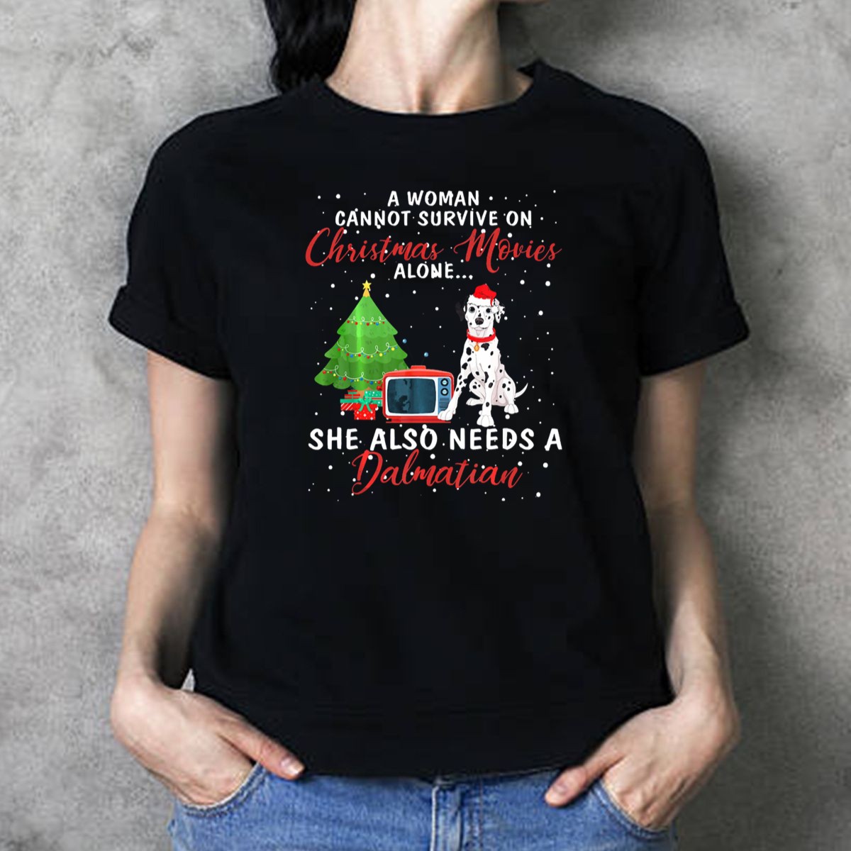 A Woman Cannot Survive On Christmas Movies Alone She Also Needs A Dalmatian T-Shirt