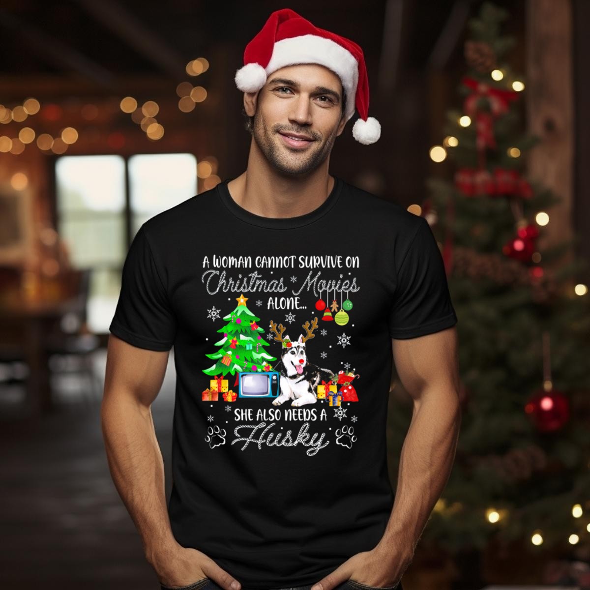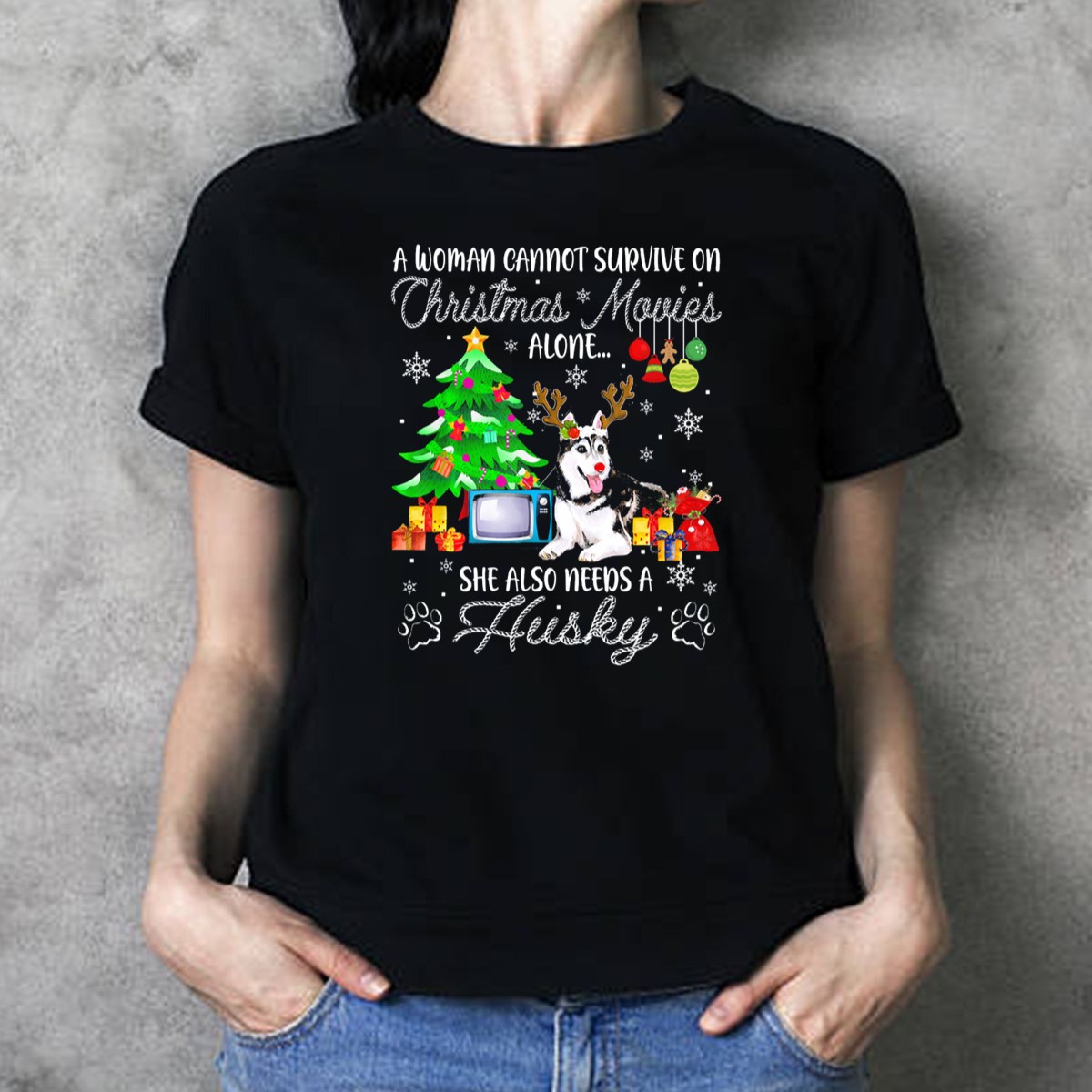A Woman Cannot Survive On Christmas Movies Alone She Also Needs A Husky T-Shirt