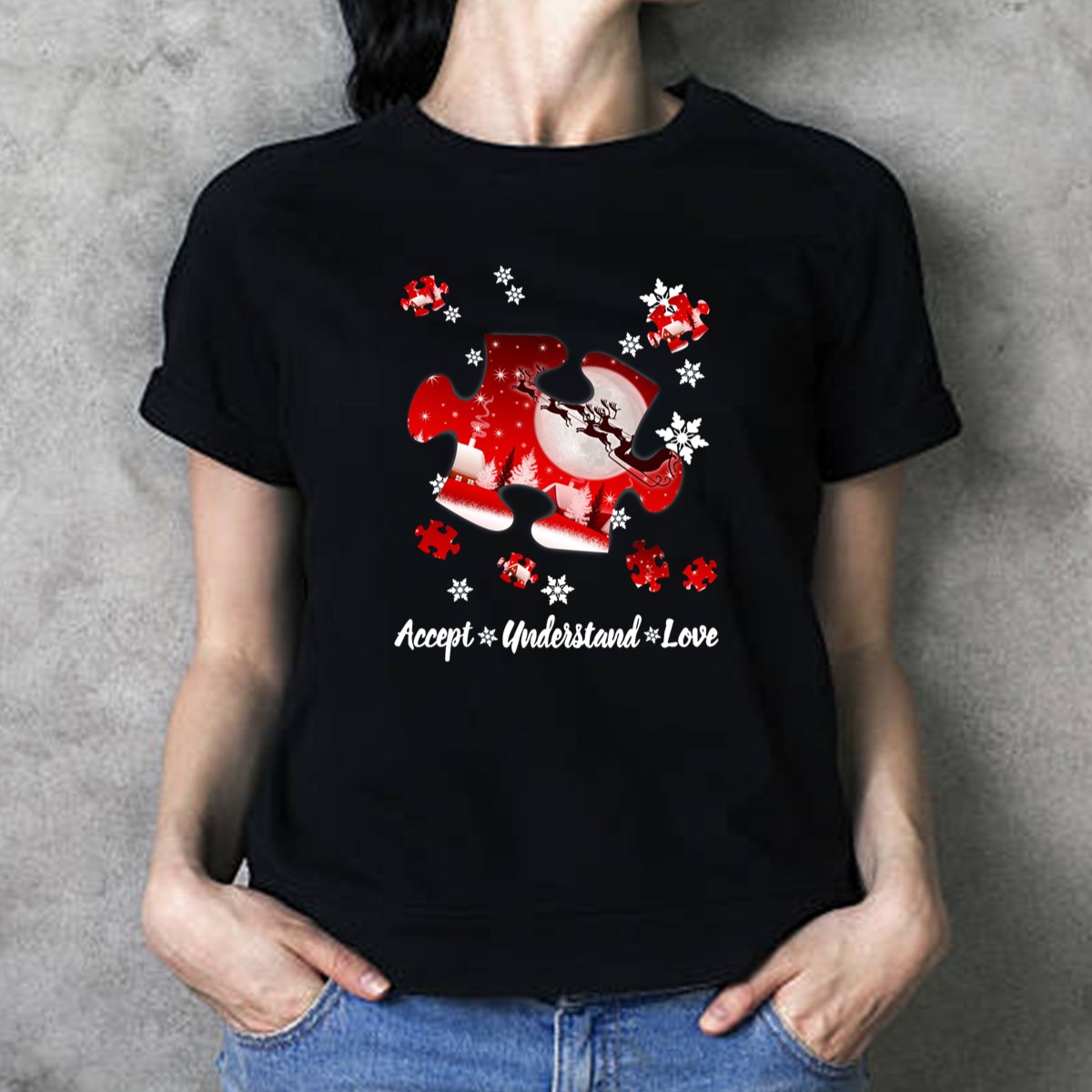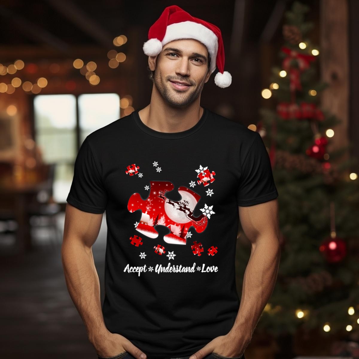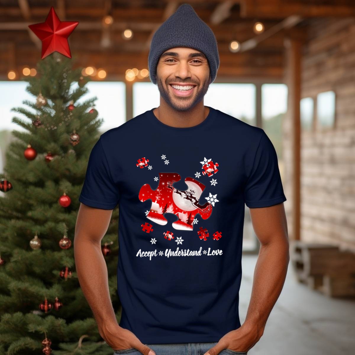 Celebrate the spirit of acceptance and understanding this holiday season with our “Accept Understand Love Autism Puzzle Christmas Snowflakes Santa Sleigh” T-shirt. Designed for those who embrace diversity and support the autism community, this shirt is perfect for casual wear, themed events, or daily outings. Featuring a unique fan-made design printed in the USA, it combines comfort and style, making it a meaningful addition to your wardrobe during the festive season.