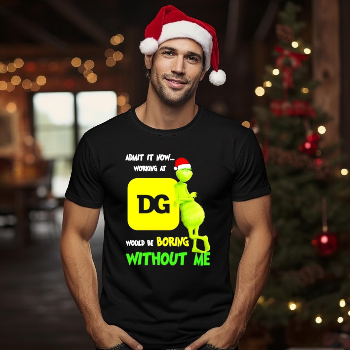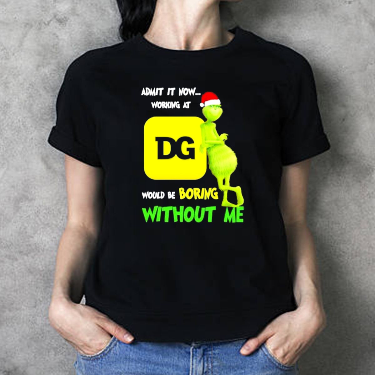 Admit It Now Working At Dg Would Be Boring Without Me Grinch Santa Hat Christmas T-Shirt