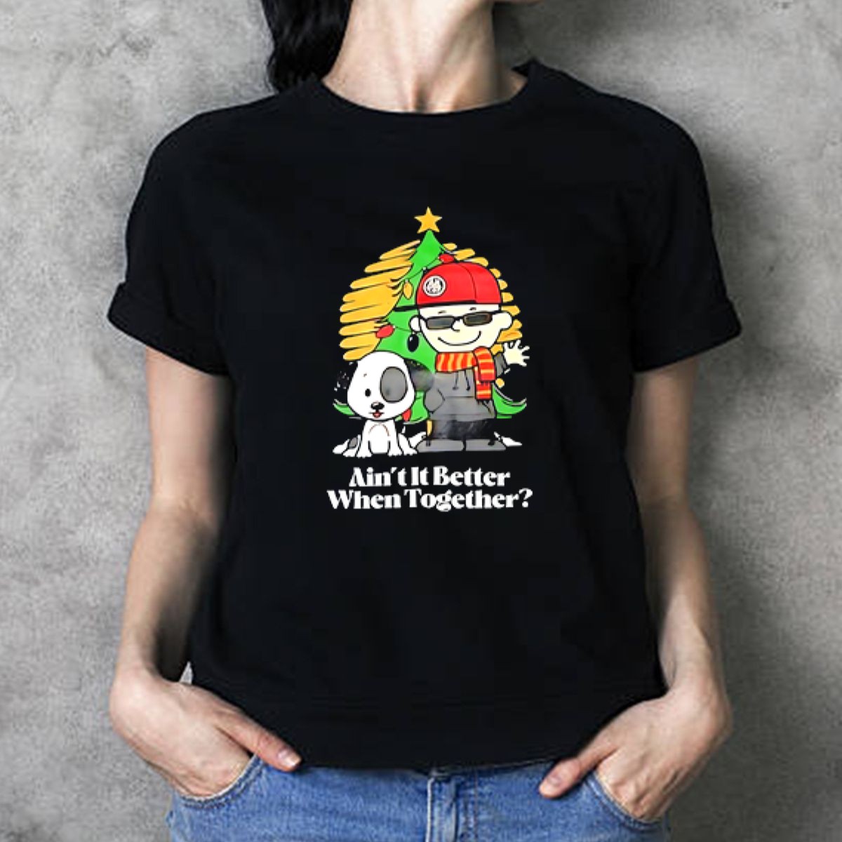 Celebrate the joy of togetherness this holiday season with our “Aint It Better When Together” Christmas Tree Dog and Man with Scarf T-Shirt! Perfect for dog lovers and festive spirits alike, this fan-made design captures the warmth of companionship during the holidays. Whether you’re attending a casual get-together, a themed event, or just enjoying daily wear, this shirt is a delightful addition to your all-season wardrobe. Made with care and printed in the USA, it brings a unique charm that stands out in any festive gathering.