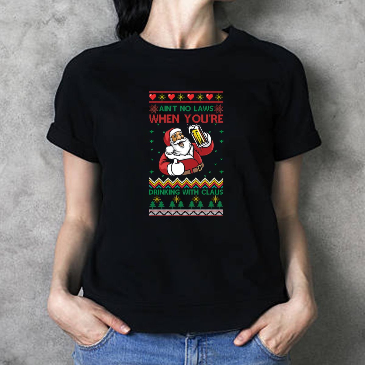 Spread holiday cheer with our “Ain’t No Laws When You’re Drinking With Claus” T-shirt! Perfect for those who love to celebrate Christmas with a twist, this fan-made design is ideal for themed events, casual get-togethers, or just lounging around the house. Made and printed in the USA, this shirt combines festive spirit with a fun message, making it a must-have for any holiday gathering.