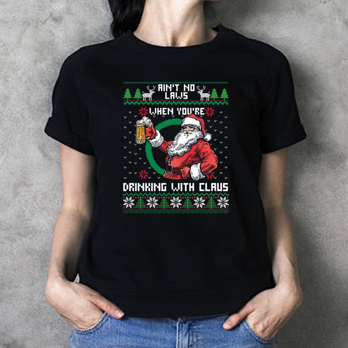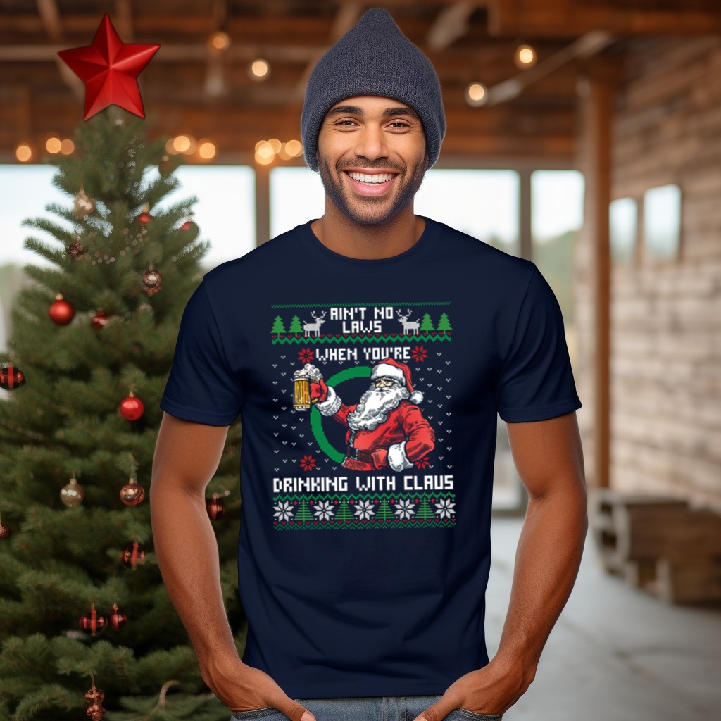 Celebrate the holiday spirit with our “Ain’t No Laws When You’re Drinking With Claus” Santa Beer Reindeer T-Shirt! Perfect for festive gatherings, casual outings, or themed events, this fun and playful design is ideal for anyone looking to spread cheer and laughter during the holiday season. Made for those who love to embrace the joy of Christmas with a twist, this fan-made graphic tee is printed in the USA, ensuring quality and a unique touch to your festive wardrobe.