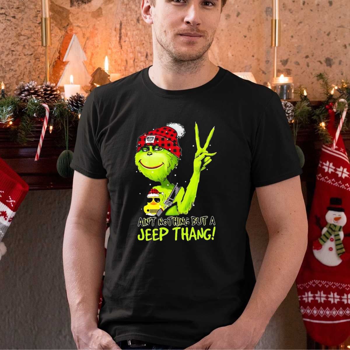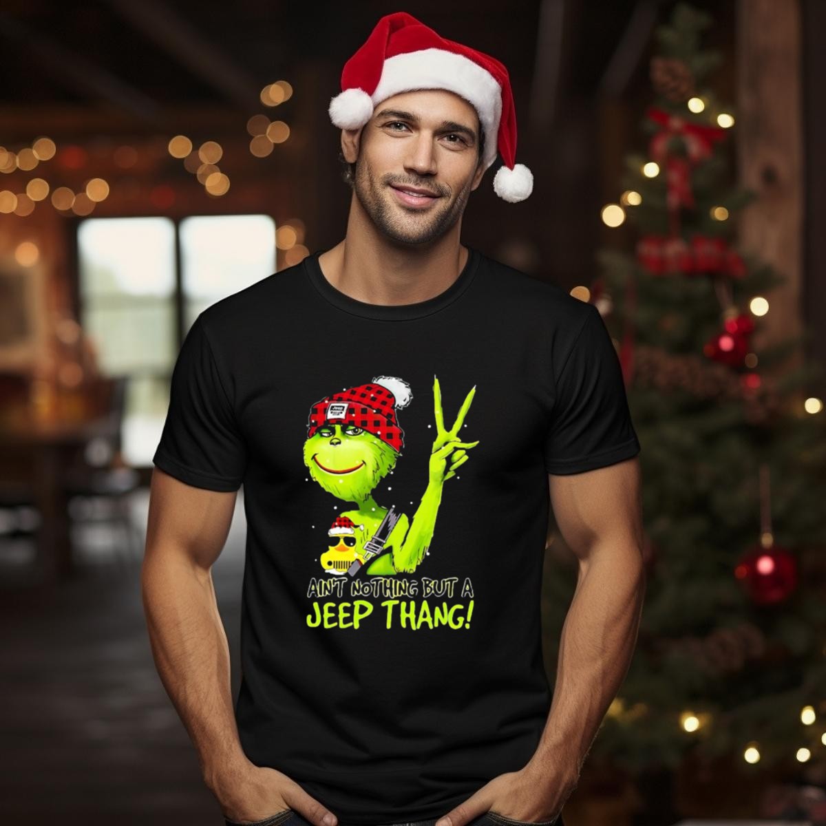 Celebrate the holiday season with a playful twist in our “Ain’t Nothing But A Jeep Thang Grinch Peace Christmas T-Shirt.” Perfect for Jeep enthusiasts and Grinch fans alike, this shirt brings together the spirit of adventure and festive cheer. Whether you’re heading to a themed event, a casual get-together, or simply enjoying daily wear, this unique fan-made design printed in the USA will make you stand out in style.
