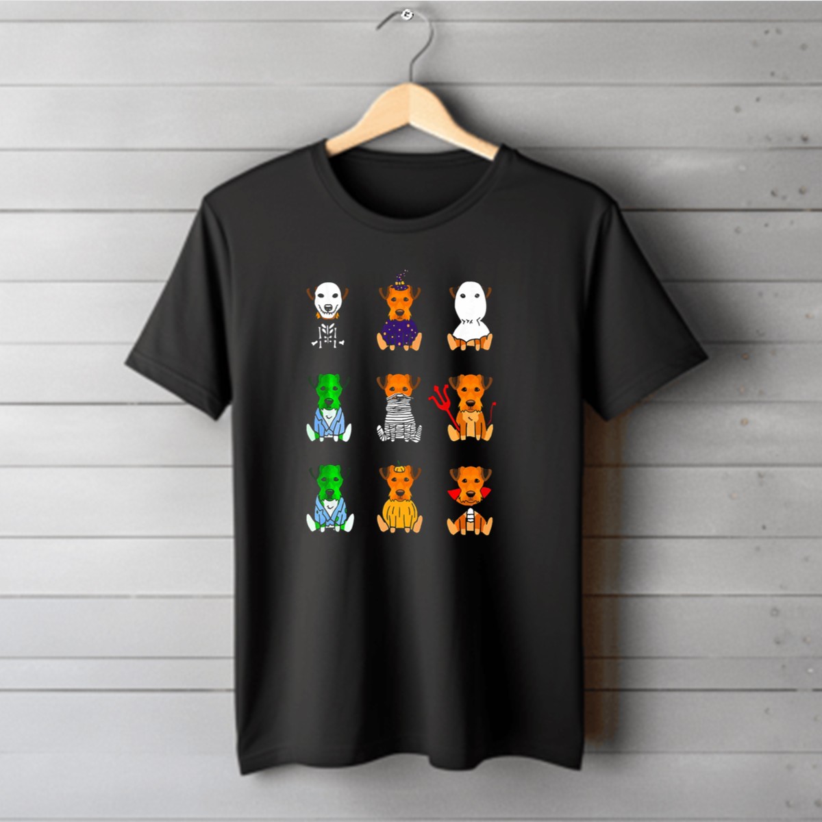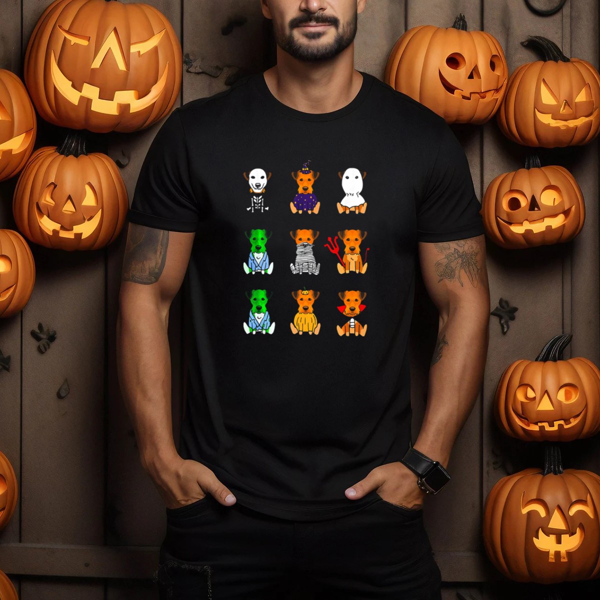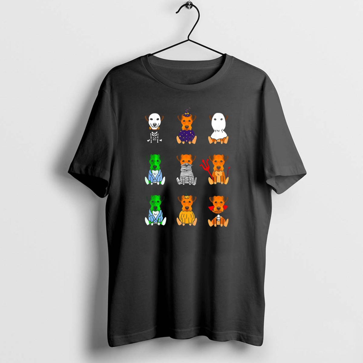 Airedale Terrier Halloween Skeleton Witch Ghost Zombie Mummy Devil Pumpkin Dracula T-Shirt