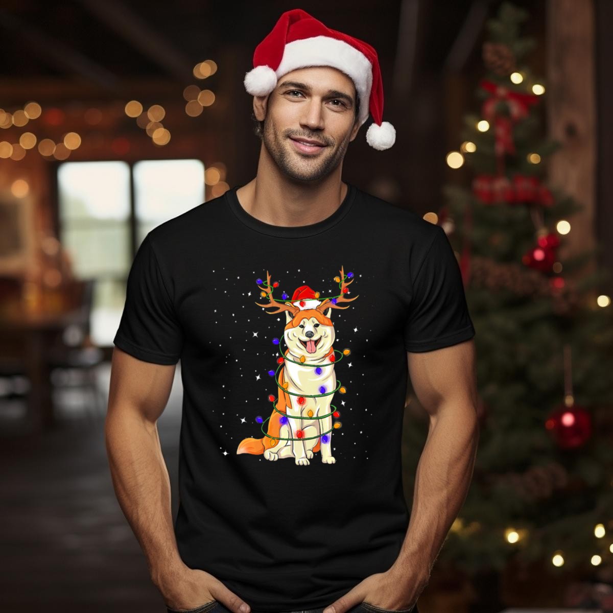 Celebrate the holiday season with our Akita Christmas Lights Dog T-Shirt, featuring a playful design of an adorable Akita wearing a Santa hat and reindeer antlers. This shirt is perfect for dog lovers and anyone looking to spread festive cheer at casual gatherings, themed events, or daily wear. Made for comfort and style, it’s a unique fan-made design proudly printed in the USA, ensuring you stand out in the crowd while embracing the holiday spirit.