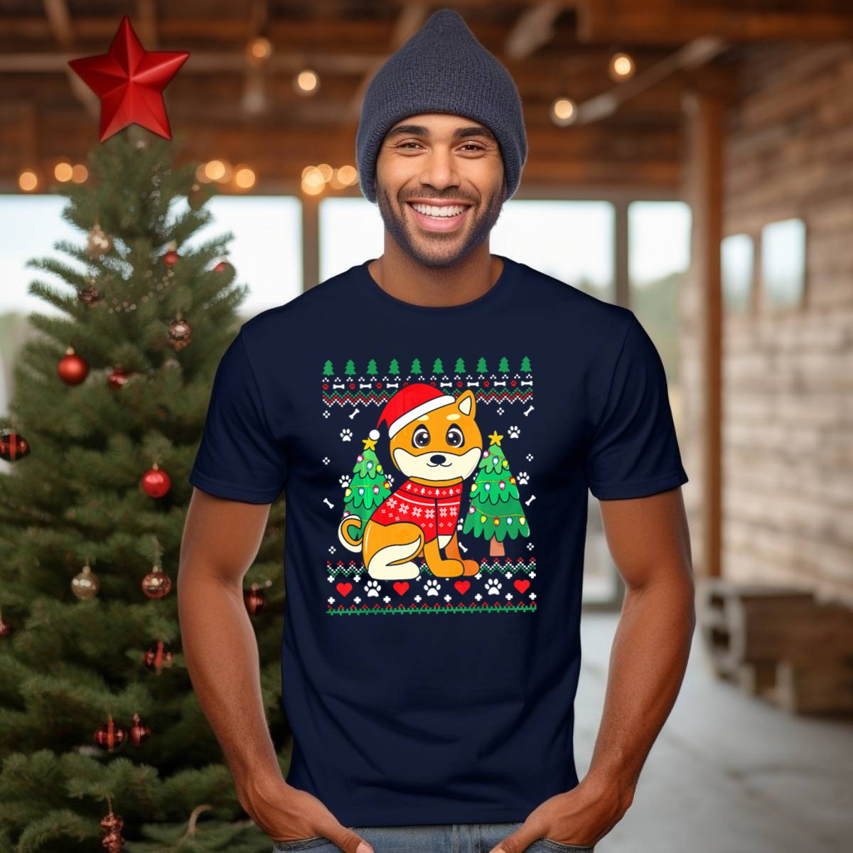 Celebrate the festive spirit with our Akita Dog In Christmas Sweater With Ornament Trees Ugly Christmas T-Shirt! Perfect for dog lovers and holiday enthusiasts alike, this shirt brings a playful twist to your casual wear with its charming design. Ideal for themed events, family gatherings, or simply spreading cheer during the holiday season, this fan-made shirt, printed in the USA, is sure to be a standout in your wardrobe.