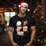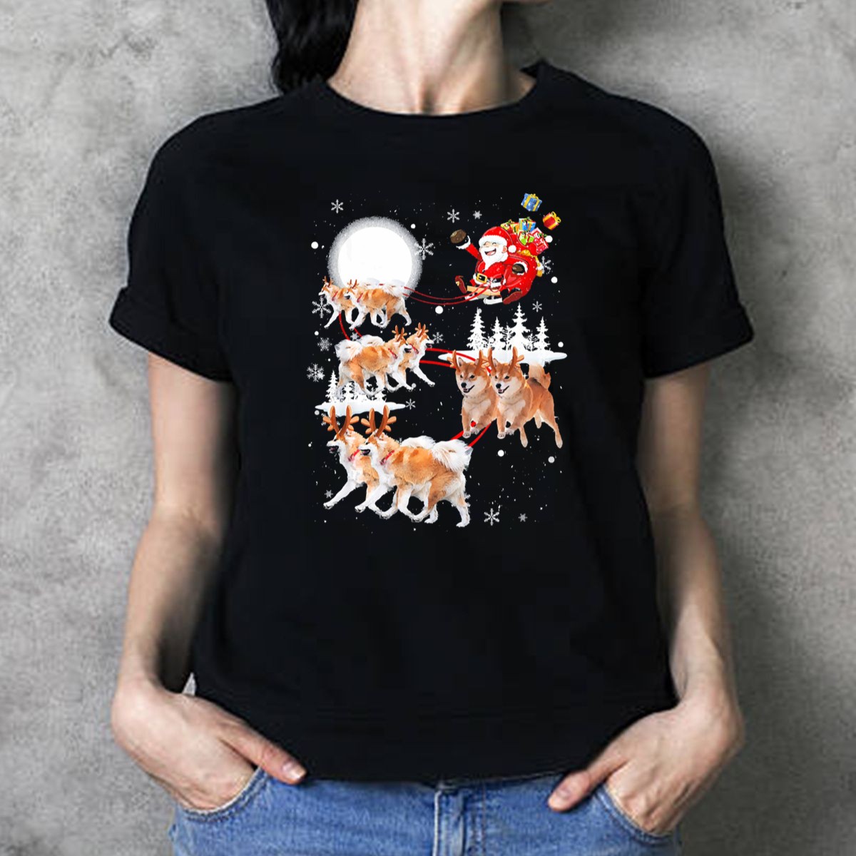 Akita Dogs Dressed As Reindeer Pulling Santas Sleigh Under The Moon With Christmas Gifts T Shirt