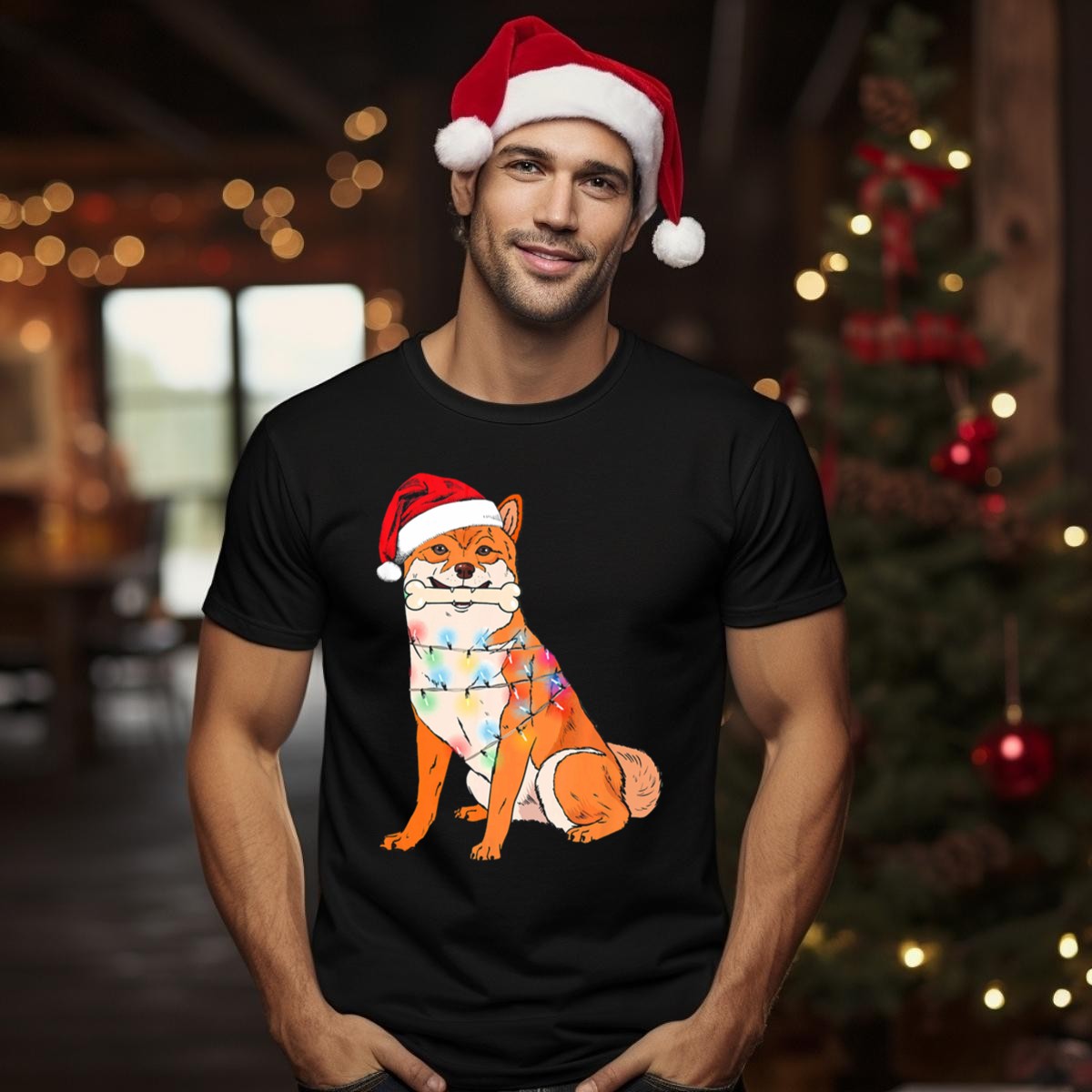 Celebrate the holiday spirit with our Akita Inu With Santa Hat And Christmas Lights Holding Bone T-Shirt! This delightful design is perfect for dog lovers and festive enthusiasts alike, making it an ideal choice for casual outings, themed events, or simply spreading cheer during the holiday season. Crafted for comfort and style, this shirt is a unique way to showcase your love for Akitas while embracing the joy of Christmas.