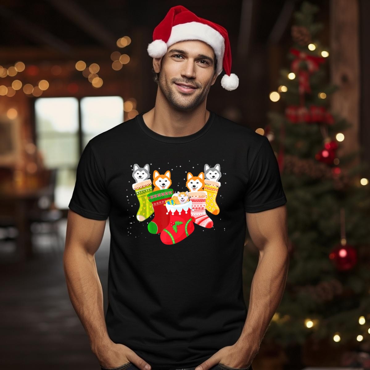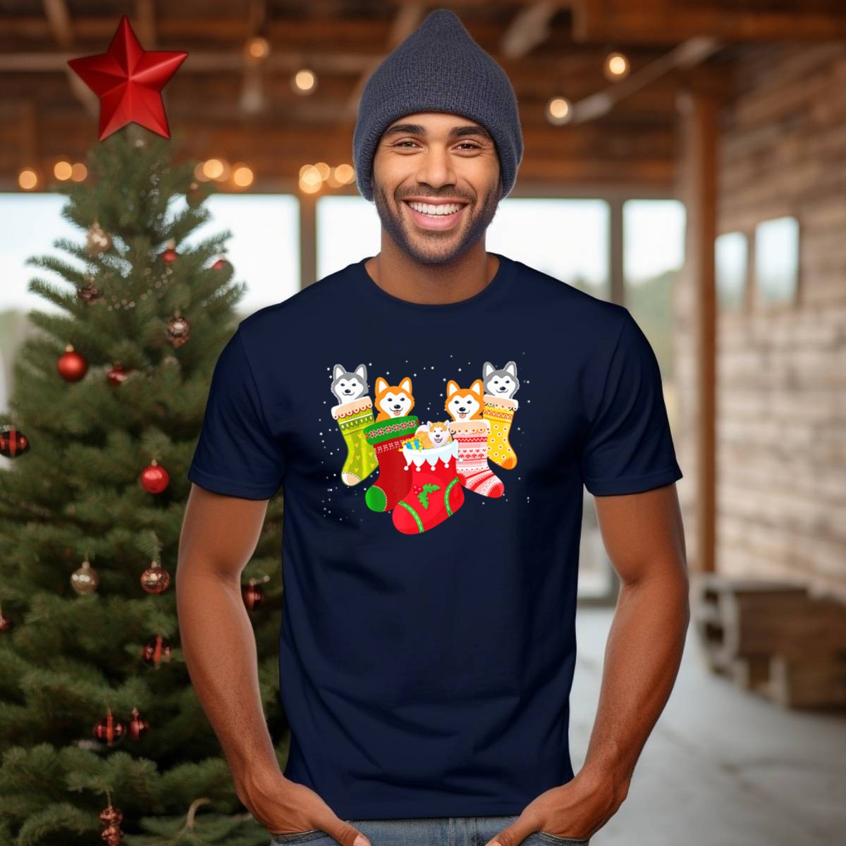 Celebrate the joy of the holidays with our Akita Puppies In Christmas Stockings T-Shirt, perfect for dog lovers and festive enthusiasts alike! This whimsical design brings a touch of humor and cheer, making it an ideal choice for casual outings, themed events, or simply spreading holiday spirit in your daily life. With its comfortable fit and vibrant print, this shirt will surely become a go-to favorite during the festive season and beyond.