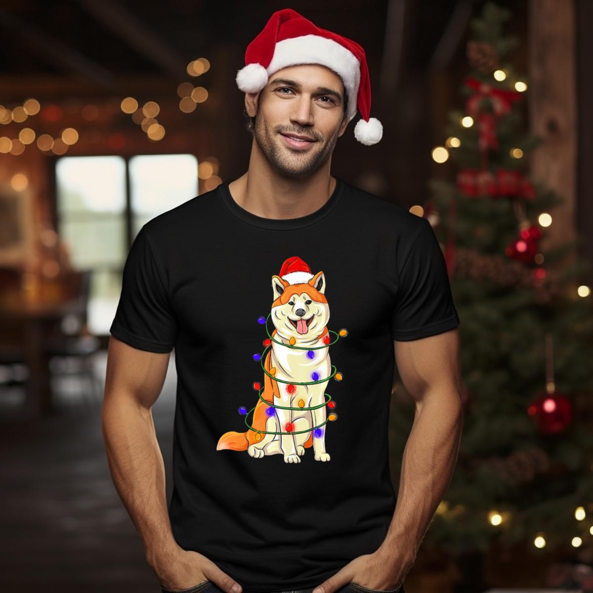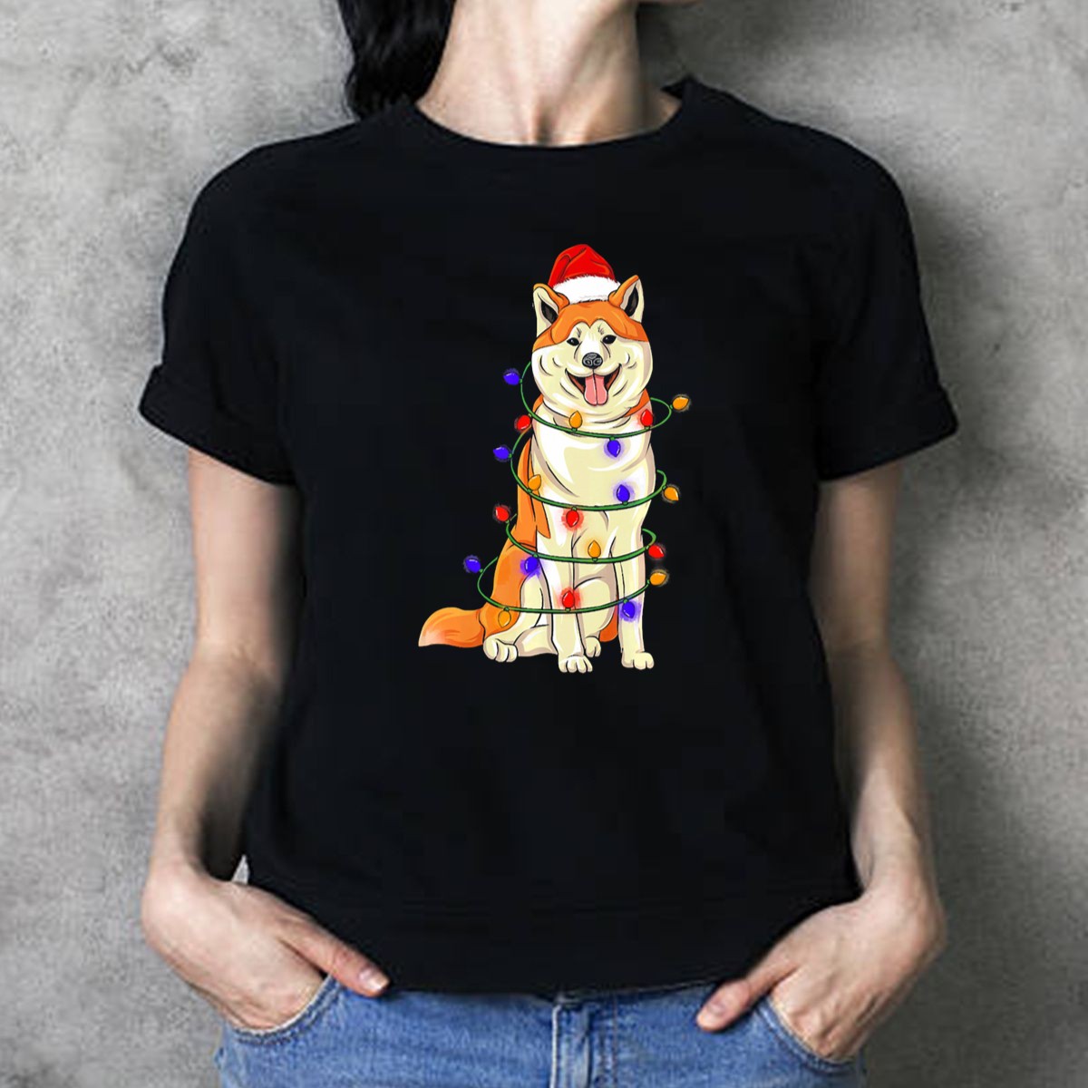 Be the first to review “Akita Wrapped In Christmas Lights With Santa Hat T Shirt”