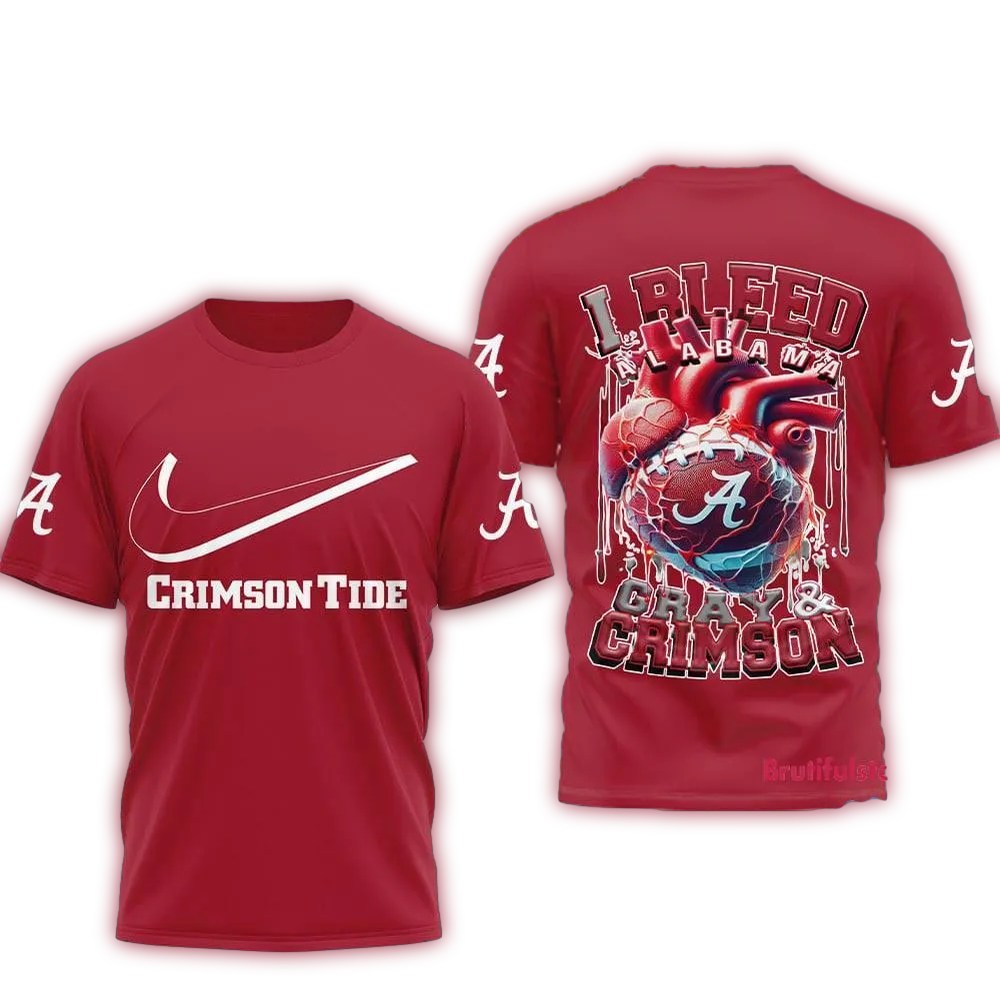 Show off your Alabama Crimson Tide spirit with our 2025 NCAA I Bleed AOP T-Shirt! Perfect for die-hard fans, this shirt is designed for casual outings, game days, or simply lounging at home while cheering on your team. Its all-over print not only celebrates your loyalty but also adds a unique flair to your wardrobe.