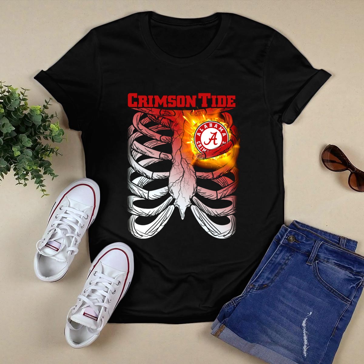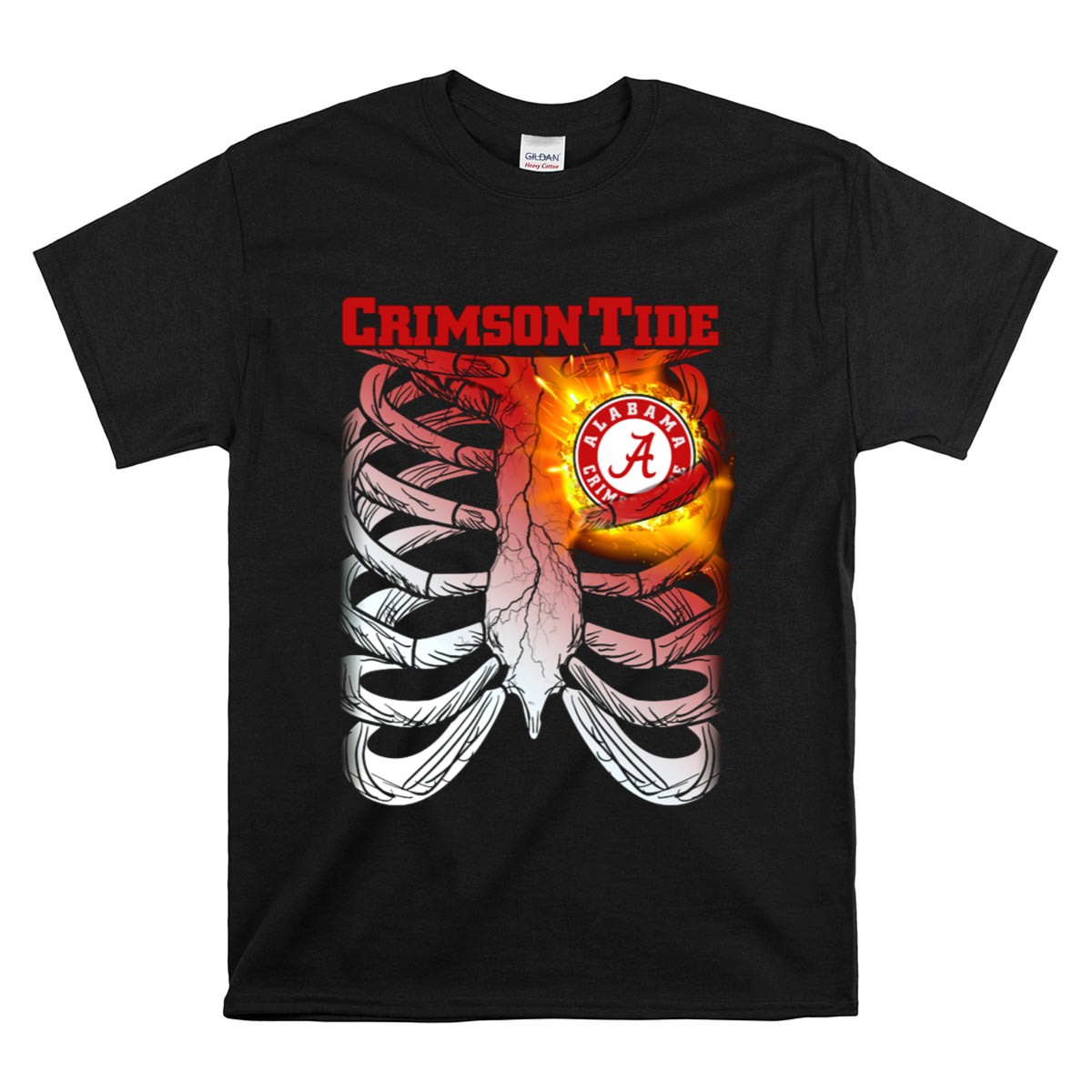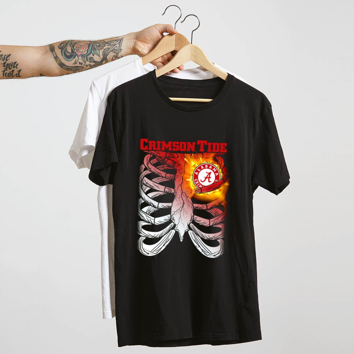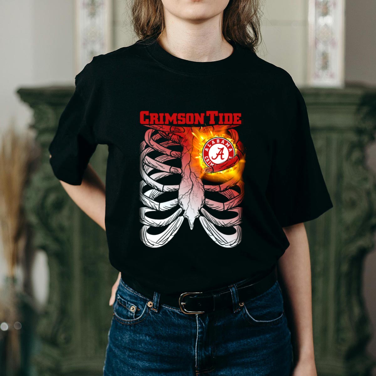 Show your unwavering support for the Alabama Crimson Tide with this unique fan-made T-shirt featuring a striking logo design of a flaming heart inside a ribcage. Perfect for die-hard fans, this shirt is ideal for casual outings, themed events, or simply showcasing your team spirit in daily wear. Made in the USA, this T-shirt combines style, comfort, and passion for the game, making it a must-have addition to any Crimson Tide enthusiast’s wardrobe.
