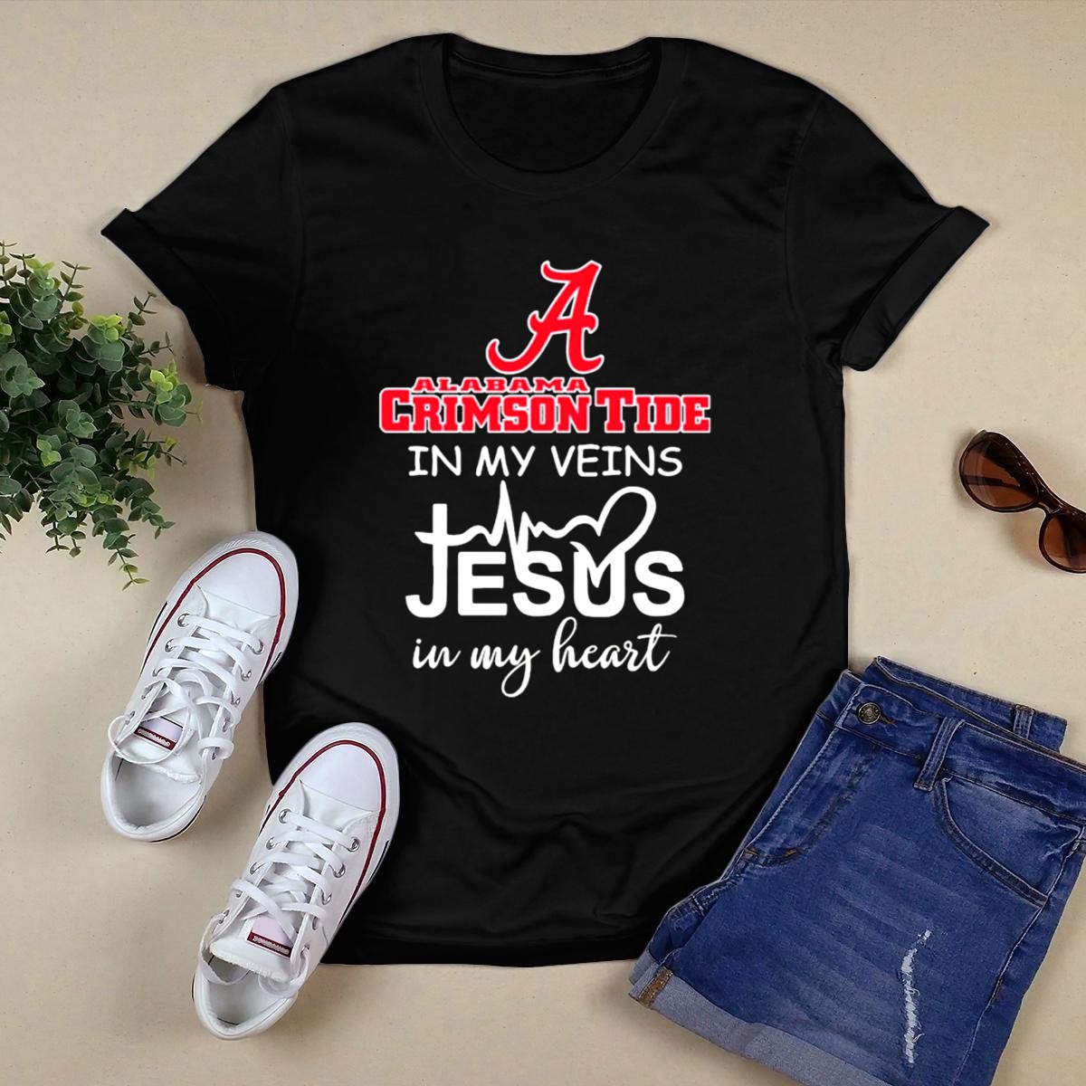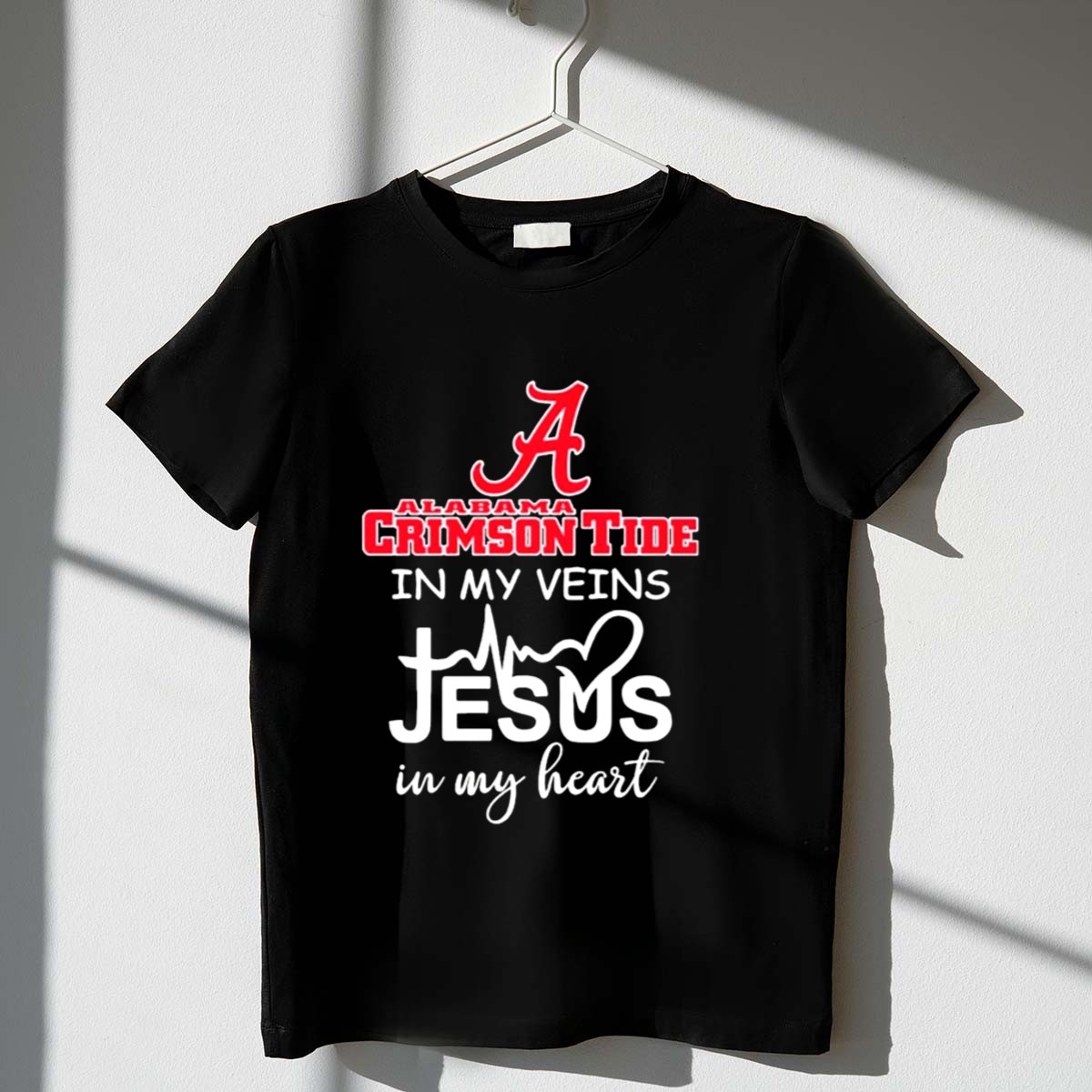 Show your unwavering support for the Alabama Crimson Tide with our fan-made “A Logo In My Veins Jesus Heartbeat In My Heart” T-shirt. This classic unisex tee is perfect for die-hard fans who want to display their team pride while enjoying ultimate comfort. Whether you’re at a game, hosting a watch party, or just out and about, this shirt combines faith and fandom in a unique design that speaks to your heart. Made in the USA, it’s not just a shirt; it’s a statement!