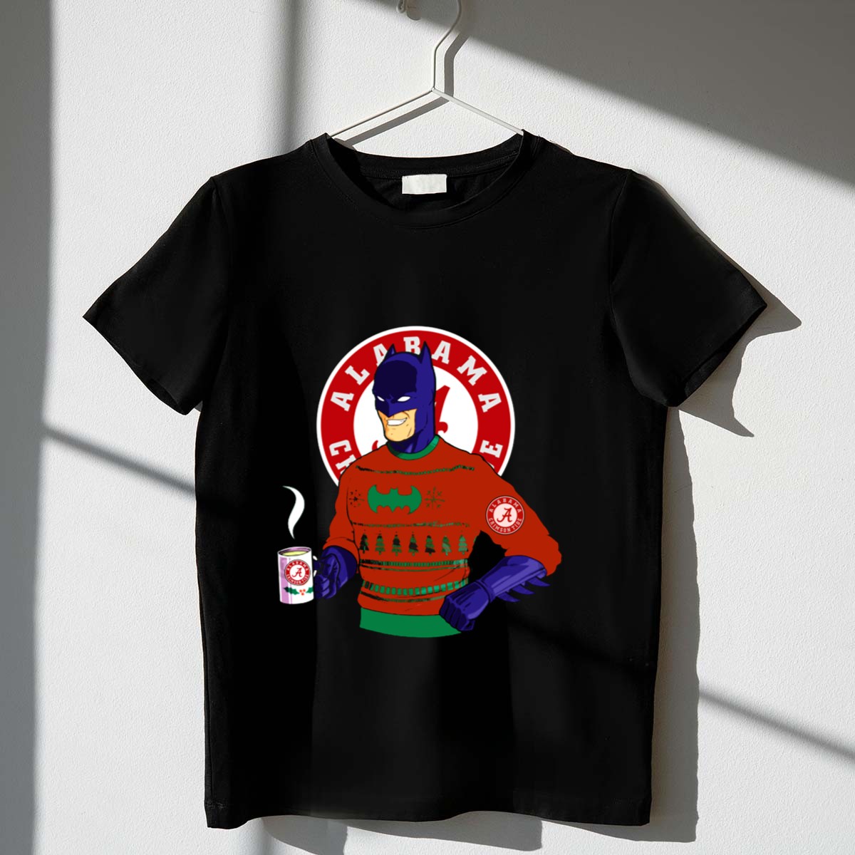 Celebrate your love for the Alabama Crimson Tide and the festive spirit with our unique Batman Ugly Christmas Sweater Holiday Mug T-Shirt! This fan-made design is perfect for die-hard Alabama supporters who want to showcase their team pride while getting into the holiday cheer. Ideal for casual wear, themed events, or daily outings, this shirt combines comfort with a fun and quirky design, making it a must-have for any fan’s wardrobe. Printed in the USA, it’s not just a shirt; it’s a statement!