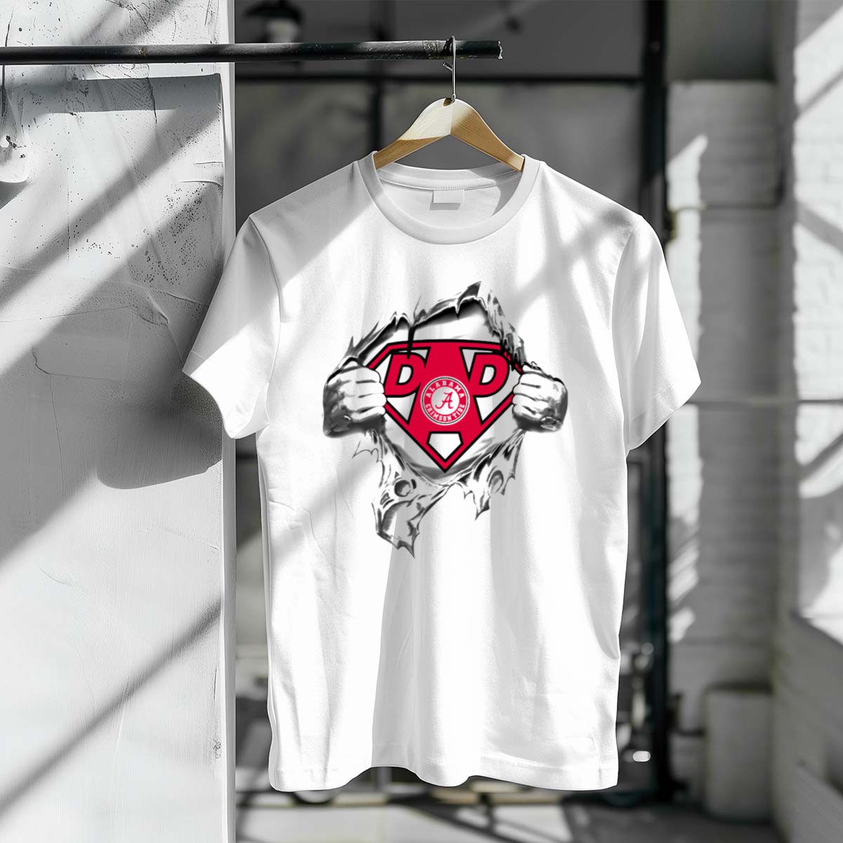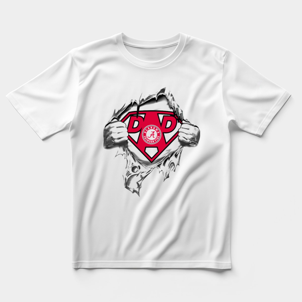 Show off your Alabama Crimson Tide pride with the Dad Superhero Symbol T-Shirt! Perfect for fathers who are die-hard fans, this shirt is an ideal choice for casual outings, game days, or themed events. Crafted with a unique fan-made design and printed right here in the USA, it seamlessly blends style and comfort, making it a must-have for every proud dad who wants to celebrate his team in a fun and trendy way.