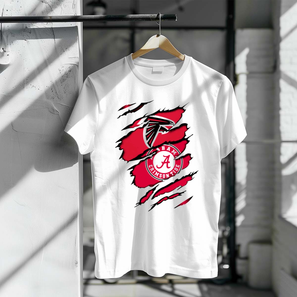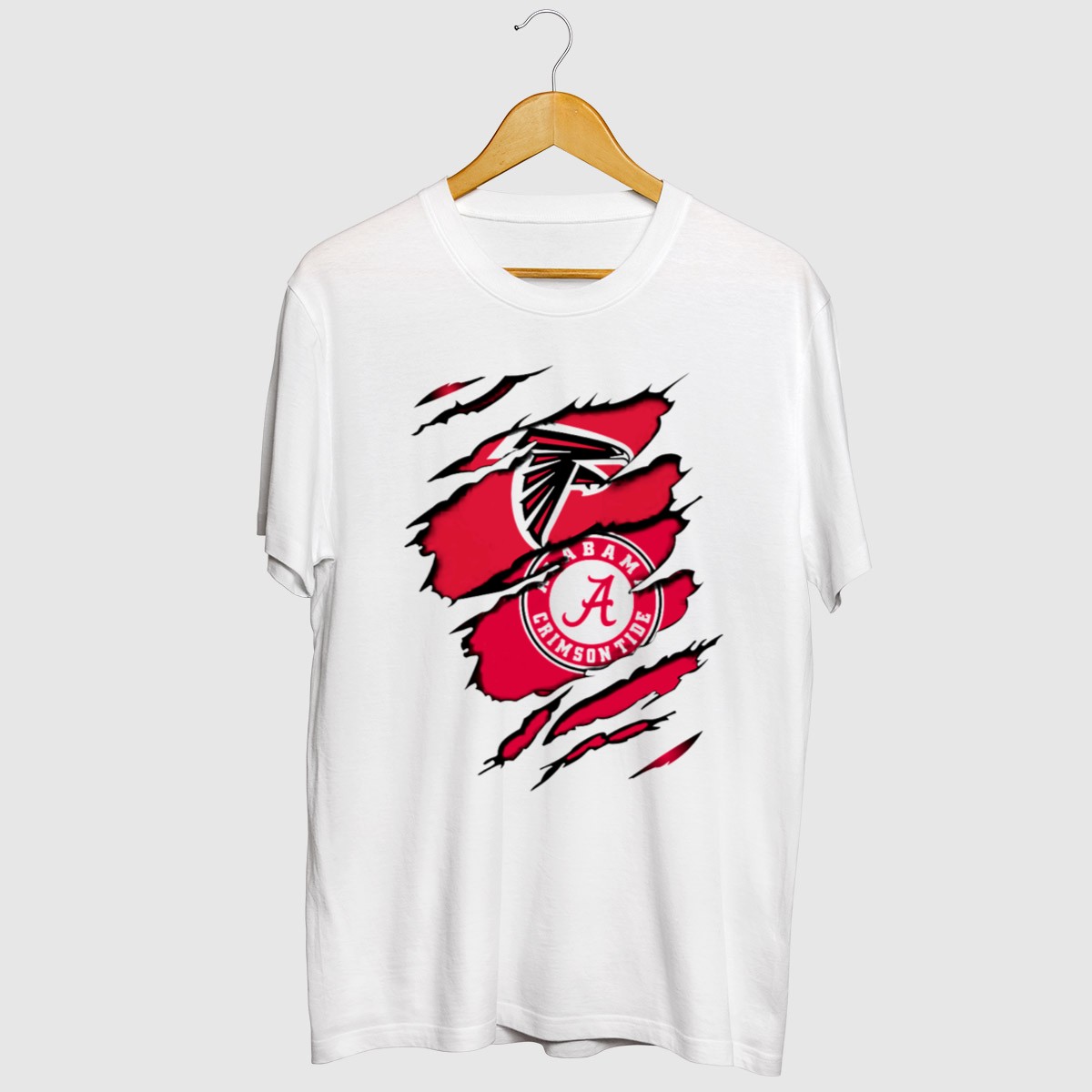Show your unwavering support for the Alabama Crimson Tide with this unique Torn T-Shirt featuring the iconic Falcons logo. Perfect for fans who want to make a bold statement, this shirt is ideal for casual outings, themed events, or just showing off your team spirit every day. Made with a fan-made design and printed in the USA, it combines style and comfort for a true Alabama supporter.