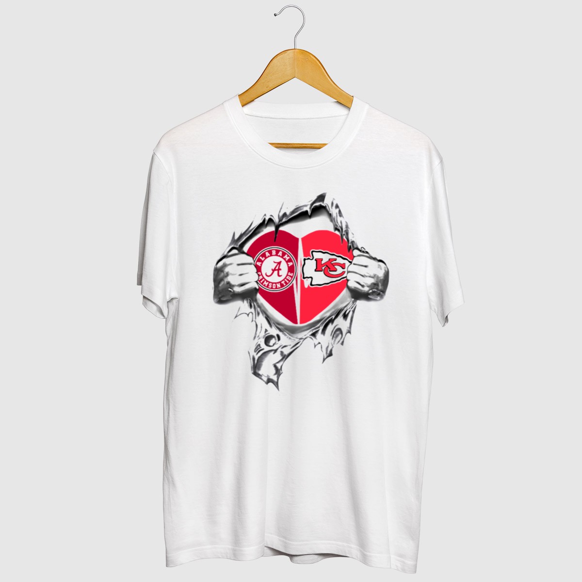 Show your love for both the Alabama Crimson Tide and the KC Chiefs with this heartwarming fan-made design! Perfect for die-hard fans who want to showcase their team spirit, this T-shirt is ideal for casual outings, themed events, or daily wear. Made in the USA, this unique tee combines comfort and style, making it a must-have addition to your collection.