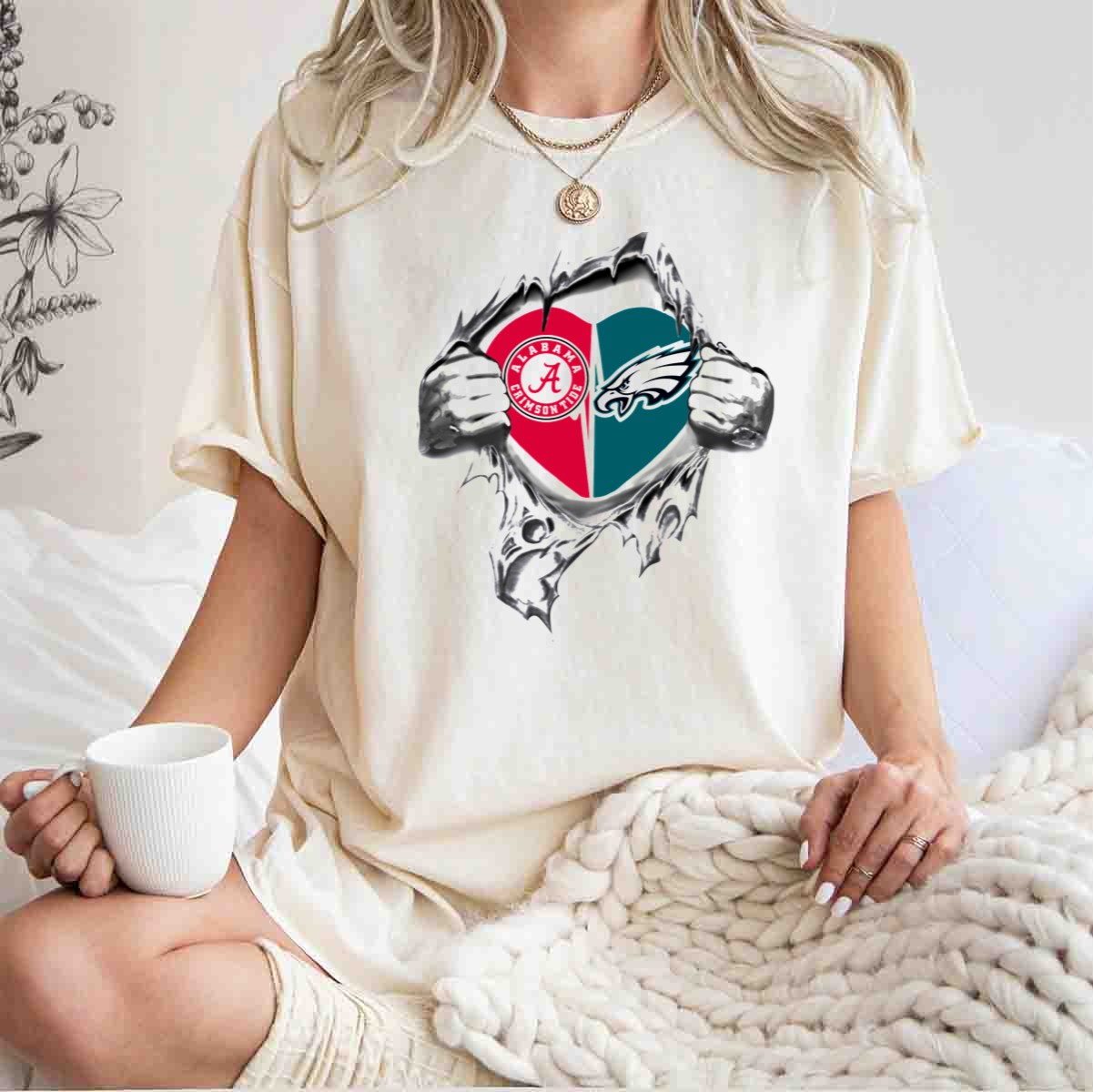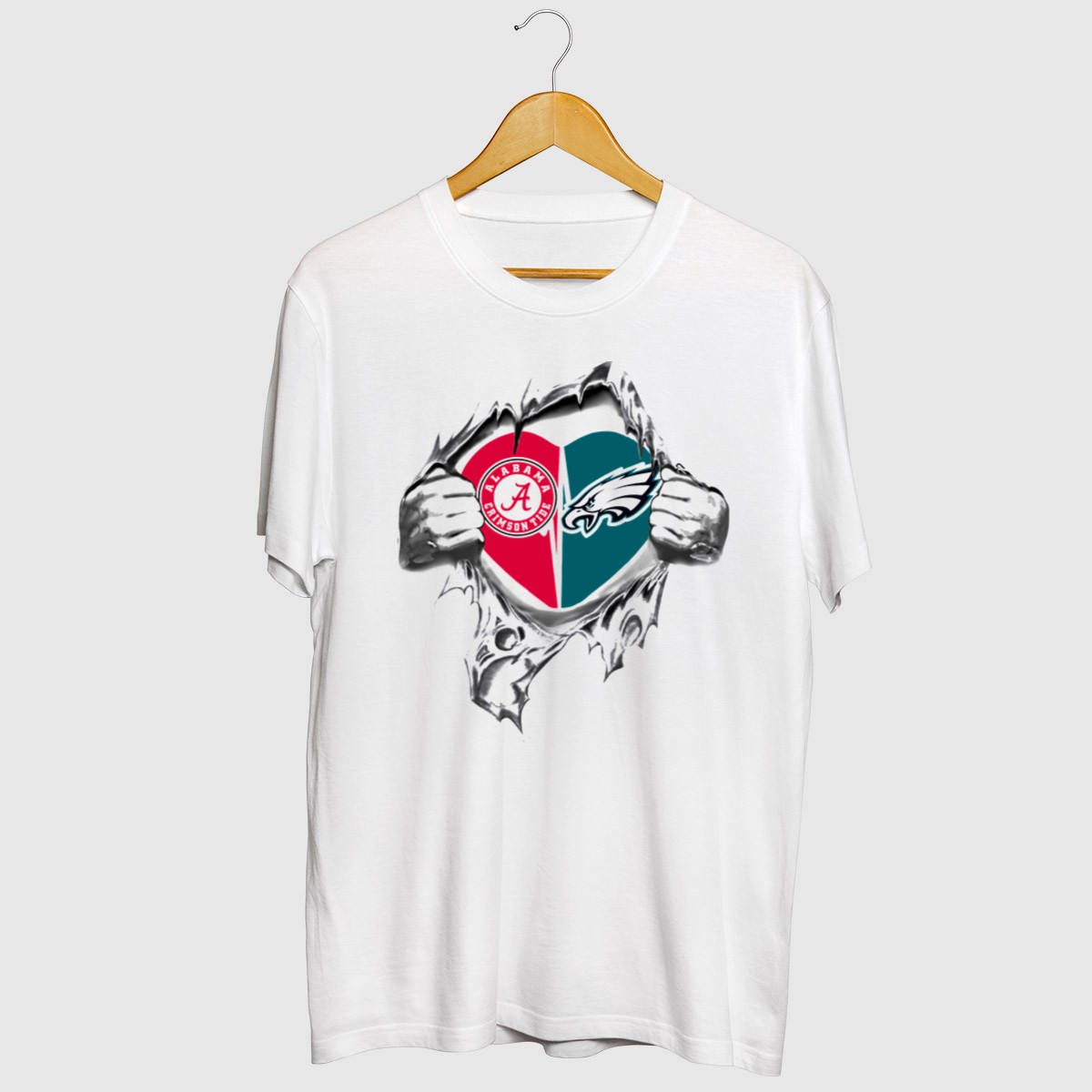 Show your passion for both the Alabama Crimson Tide and the Philadelphia Eagles with this heart-burst graphic T-shirt! Perfect for fans who love to celebrate their favorite teams in style, this shirt is designed for casual wear, themed events, or just relaxing at home. Made with a fan-made design and printed in the USA, it combines comfort with team spirit, making it an essential addition to any sports enthusiast’s wardrobe.