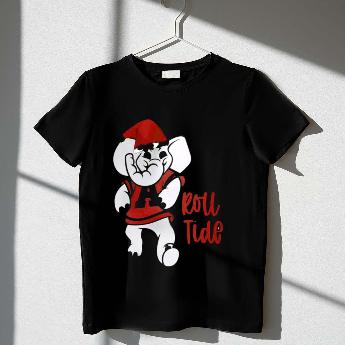 Show your unwavering support for the Alabama Crimson Tide while celebrating the festive season with our Roll Tide Christmas Elephant Santa Hat T-Shirt! Perfect for fans and holiday enthusiasts alike, this shirt features a playful design that combines team spirit with holiday cheer. Whether you’re at a casual gathering, a themed event, or just enjoying daily wear, this shirt is sure to turn heads and spread joy. Made with care in the USA, it’s the ideal way to showcase your love for Alabama football during the holidays!