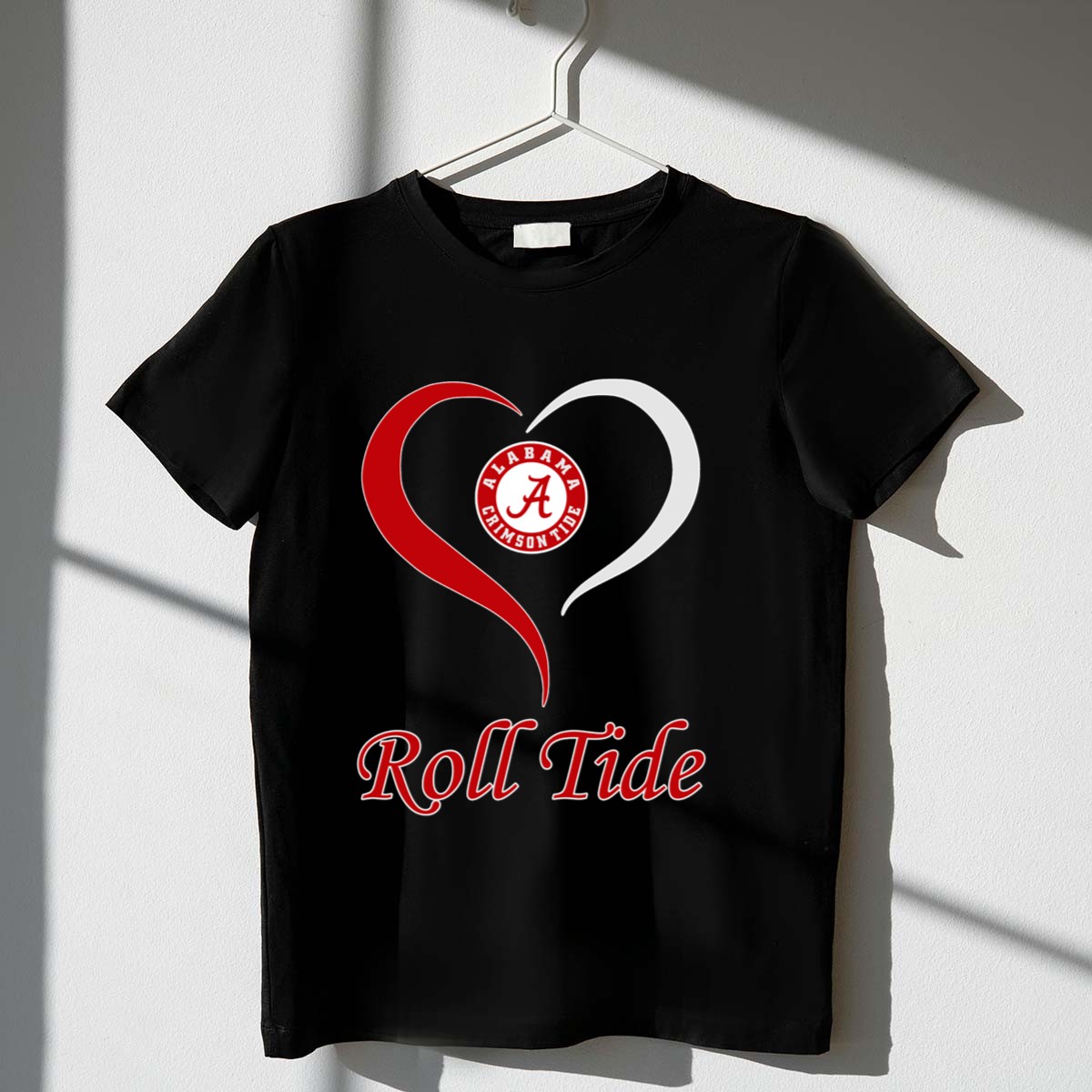 Show your unwavering support for the Alabama Crimson Tide with this stylish Roll Tide Heart T-Shirt. Perfect for die-hard fans and casual wearers alike, this shirt is ideal for game days, themed events, or simply hanging out with friends. Its unique fan-made design showcases your love for the team while ensuring comfort and breathability, making it a must-have for every Crimson Tide enthusiast.