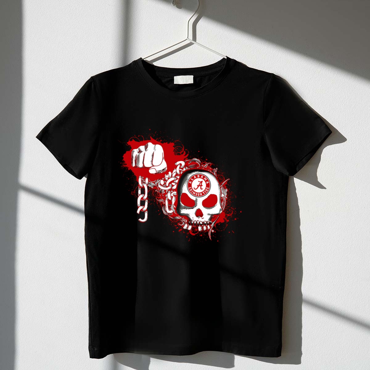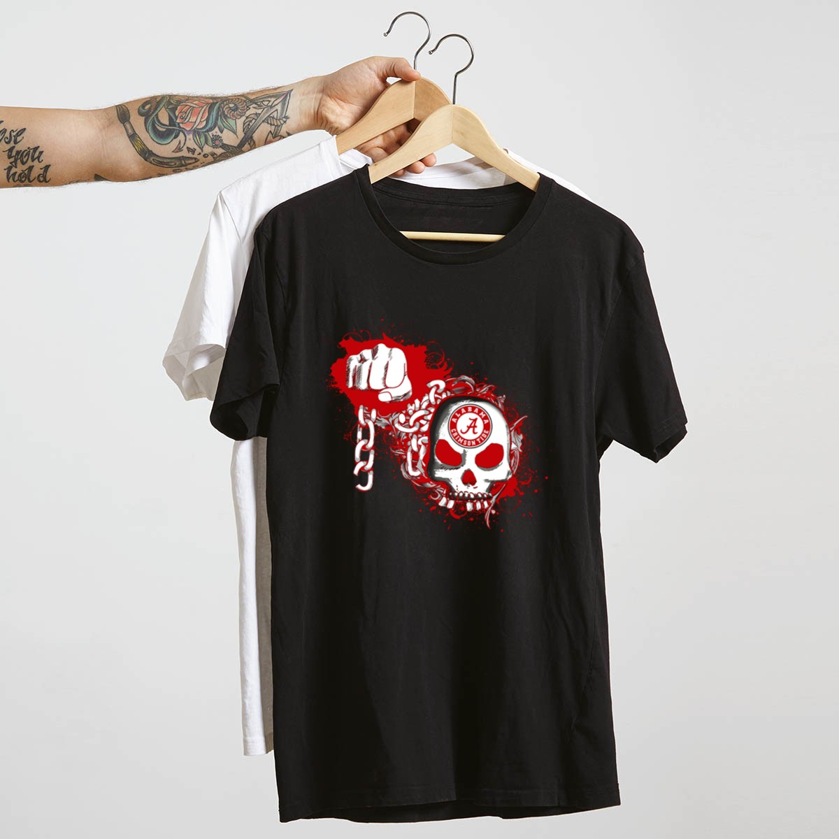 Show your unwavering support for the Alabama Crimson Tide with this striking Skull and Fist with Chains T-Shirt. Perfect for fans who live and breathe Alabama football, this shirt is ideal for casual outings, themed events, or simply showcasing your team spirit every day. Crafted with a fan-made design and printed in the USA, this unique piece combines comfort and style, making it a must-have for any dedicated supporter.