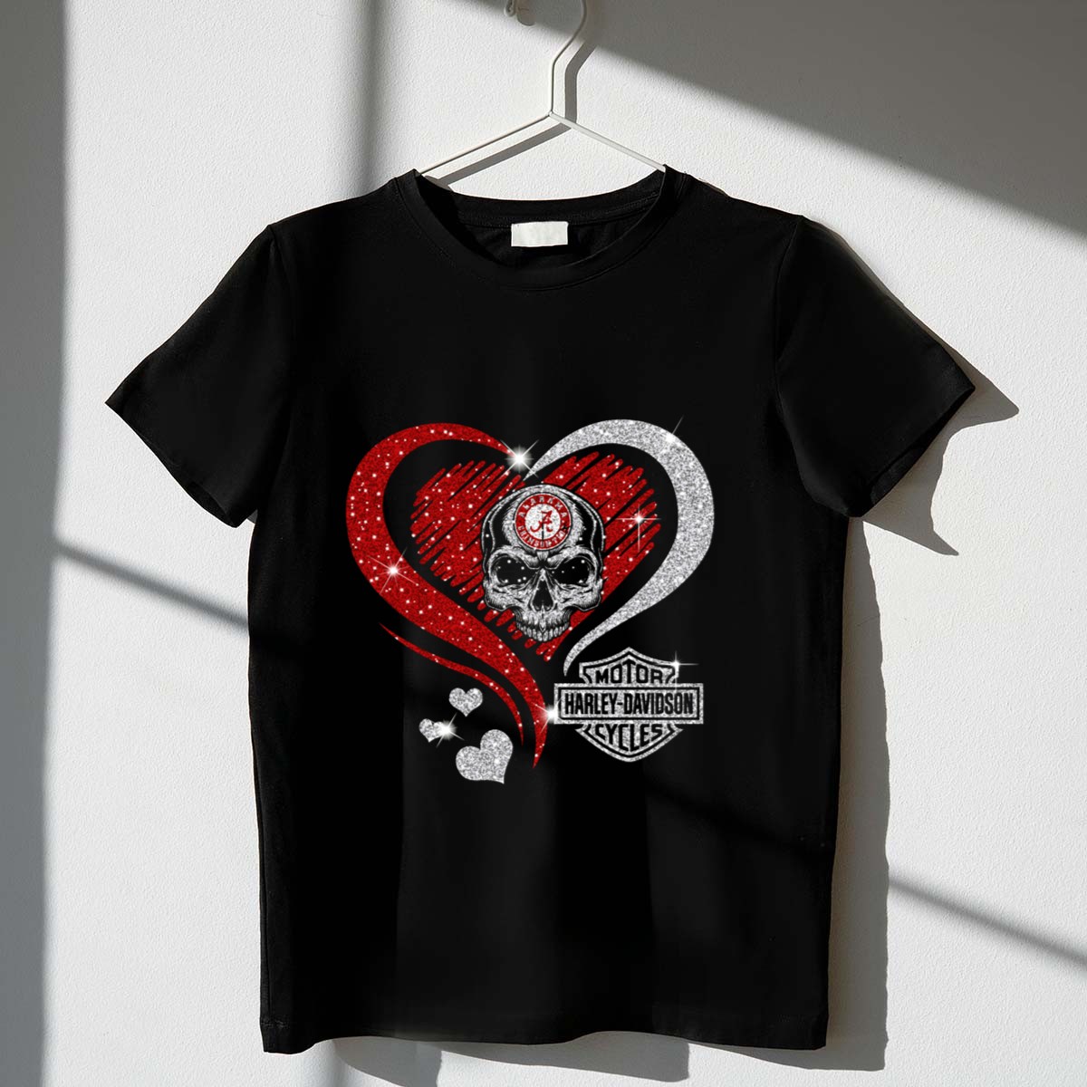 Show your love for the Alabama Crimson Tide with this bold Skull Heart HD Motor Cycles T-Shirt. Perfect for passionate fans and motorcycle enthusiasts alike, this shirt combines a striking design with comfort and style, making it an essential addition to your casual wardrobe. Whether you’re cheering on your team at the game, attending a themed event, or simply enjoying daily wear, this fan-made shirt is printed in the USA to ensure quality and uniqueness.