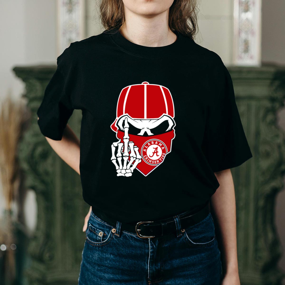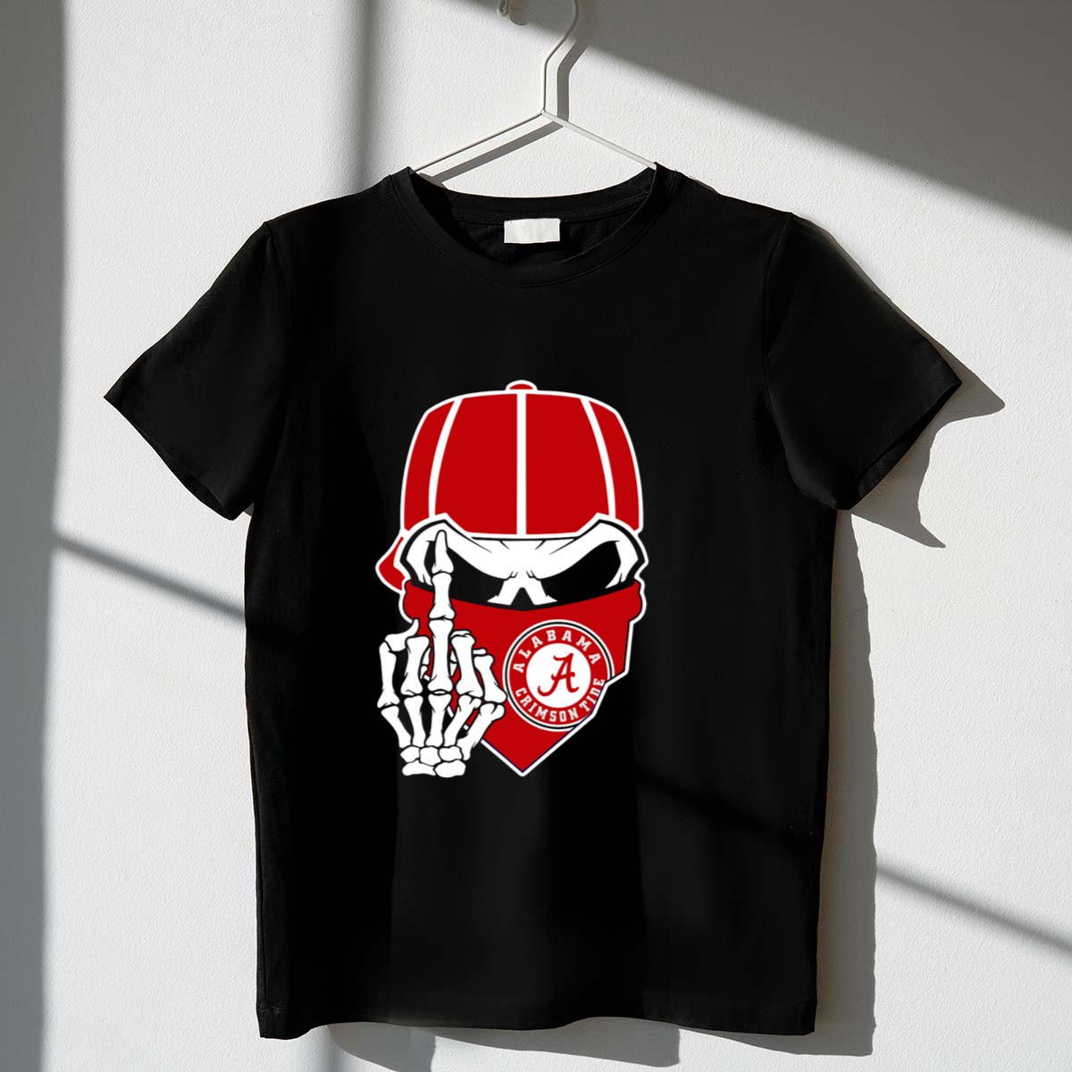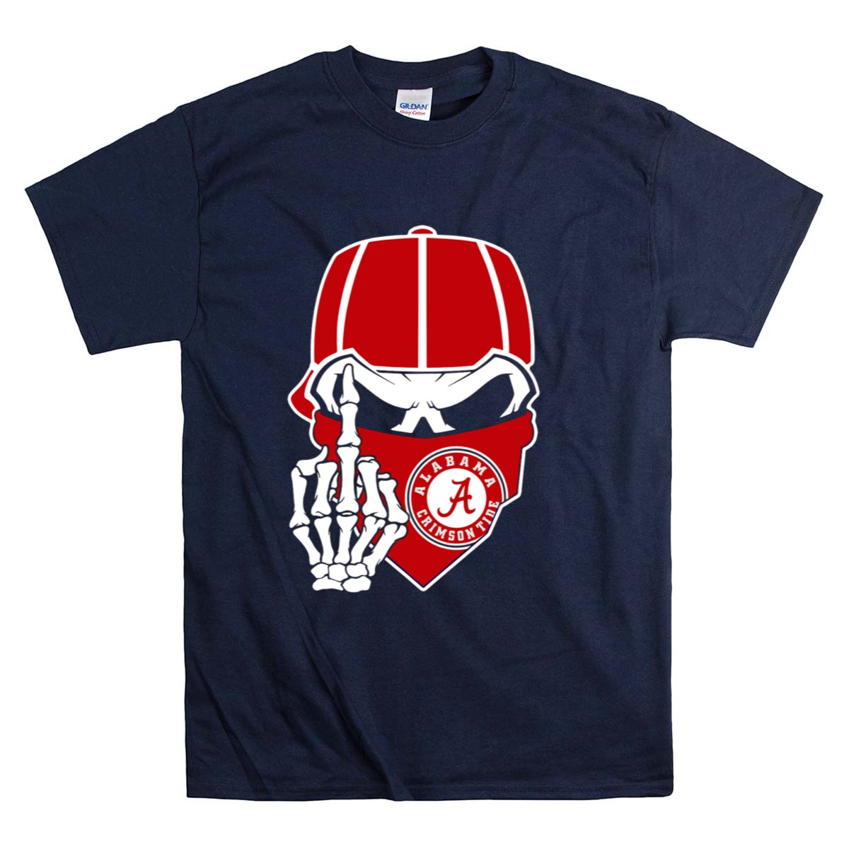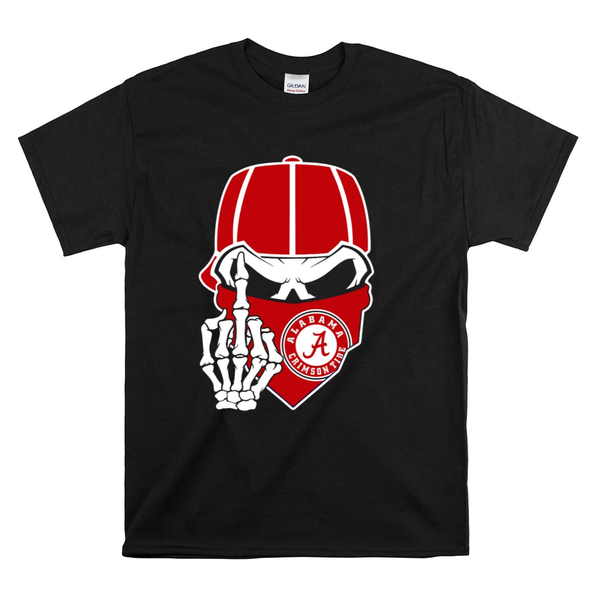 Be the first to review “Alabama Crimson Tide Skull Skeleton Bandana Middle Finger T Shirt”