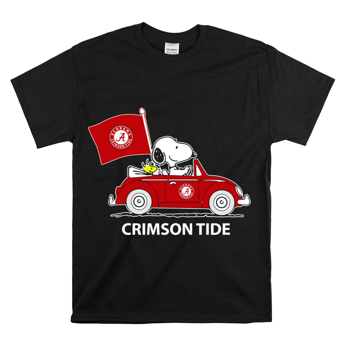 Alabama Crimson Tide Snoopy Woodstock Driving Car T Shirt