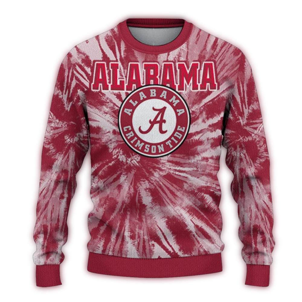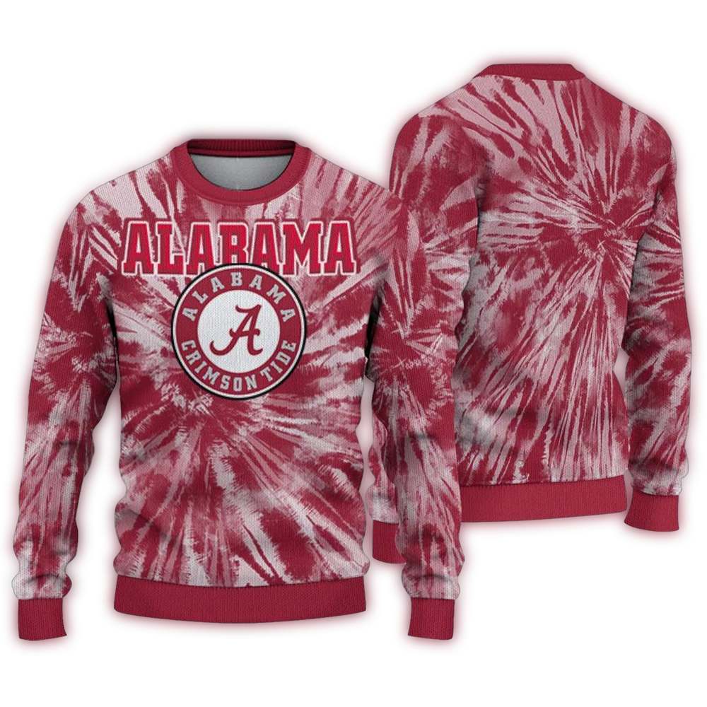 Get ready to cheer on your team in style with our Alabama Crimson Tide Tide Tie Dye Pattern Ugly Sweater! Perfect for die-hard fans, this cozy sweater is ideal for tailgating, holiday parties, or simply lounging at home while you show off your team spirit. With its unique tie-dye design, this sweater stands out in any crowd, making it a must-have for any Crimson Tide supporter.