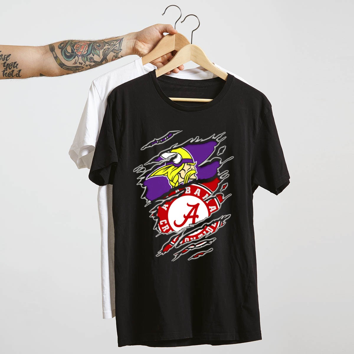 Show your team spirit with the Alabama Crimson Tide Vikings Crossover T-Shirt, a perfect blend of bold fandom and casual style. Designed for the dedicated sports enthusiast, this shirt is ideal for game days, themed events, or simply showcasing your love for both the Alabama Crimson Tide and the Vikings. Made with a soft, breathable fabric, it combines comfort with a striking fan-made design printed right here in the USA, making it a unique addition to your wardrobe.