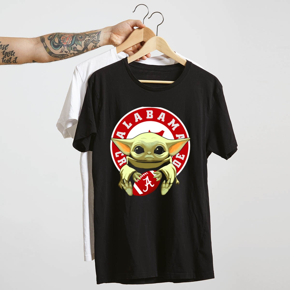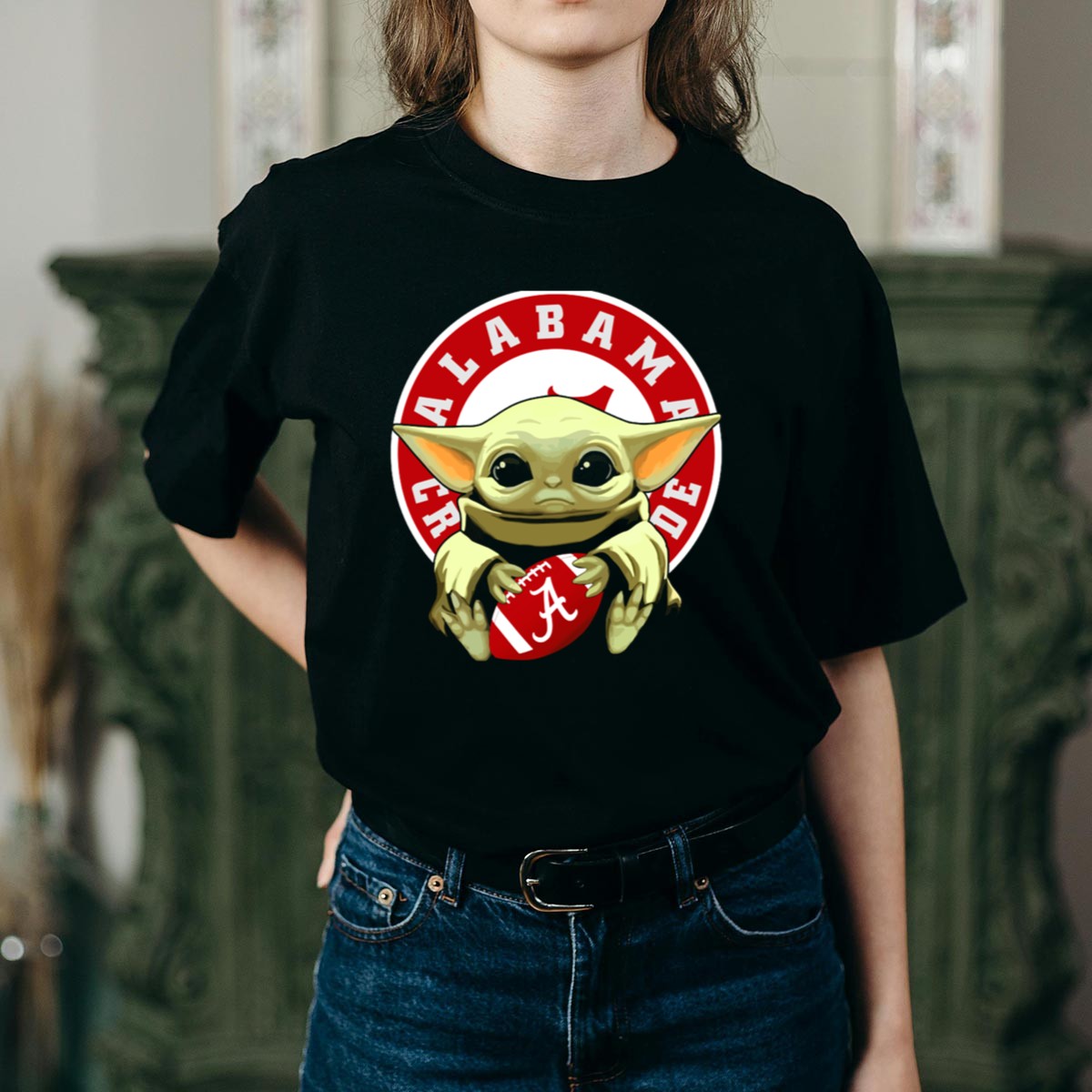Show your love for the Alabama Crimson Tide and a galaxy far, far away with our Yoda Baby Football T-Shirt! This fan-made design is perfect for die-hard supporters and casual fans alike, making it an excellent choice for game days, themed events, or just lounging around. Crafted for comfort and style, this shirt combines the legendary wisdom of Yoda with the spirited pride of Alabama football, ensuring you stand out while cheering for your favorite team!