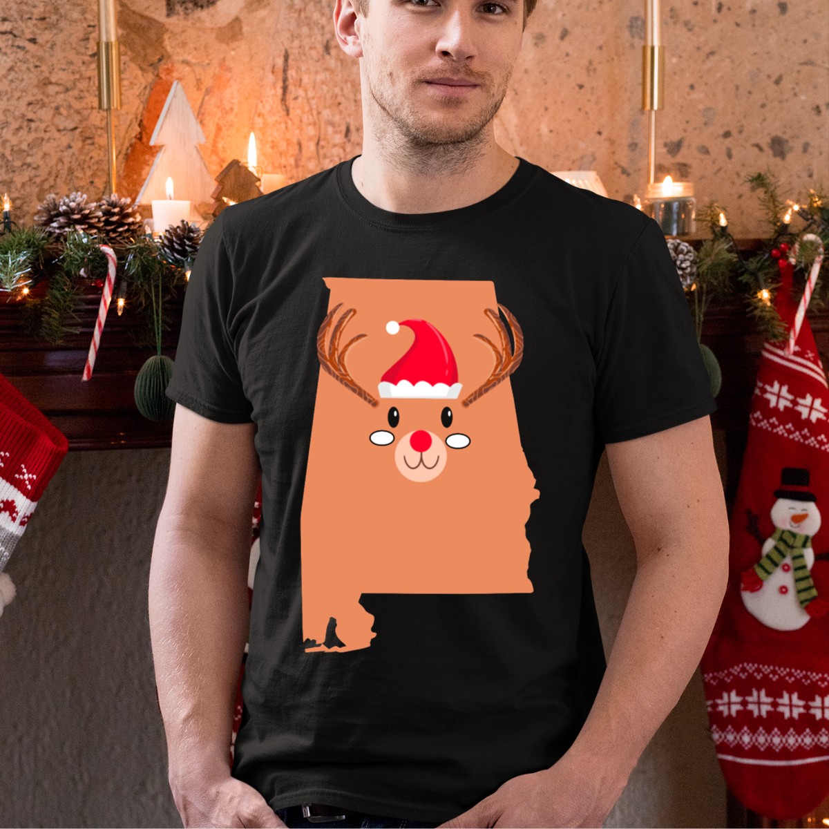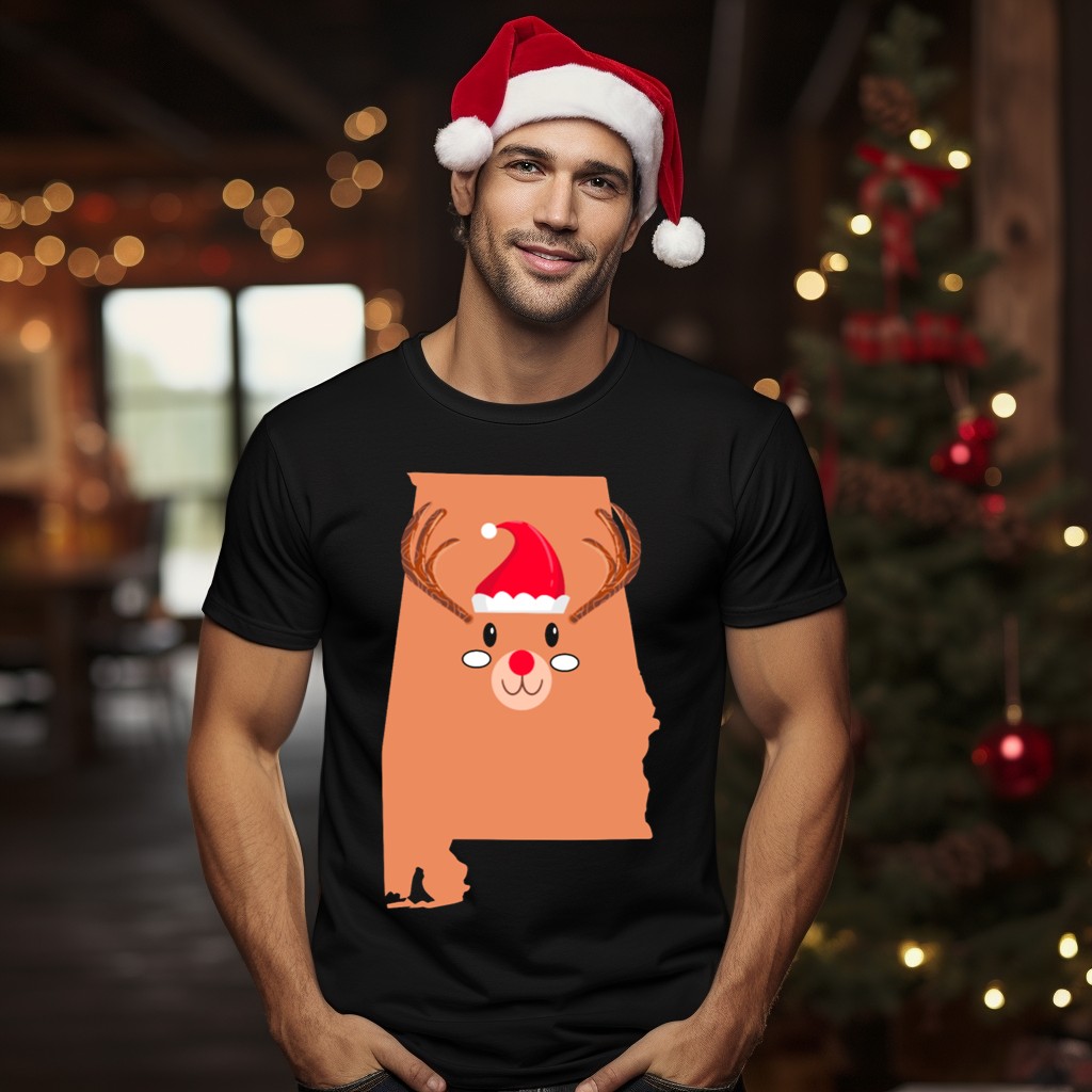 Celebrate the holiday spirit with our Alabama Map Santa Hat Antlers Red Nose Reindeer Christmas T-Shirt! This festive and unique design is perfect for anyone who wants to spread cheer during the holiday season. Whether you’re attending a themed event, gathering with family, or simply enjoying daily wear, this shirt is sure to make a statement. Made with care in the USA, it’s a fantastic way to showcase your love for Alabama while embracing the fun of Christmas!