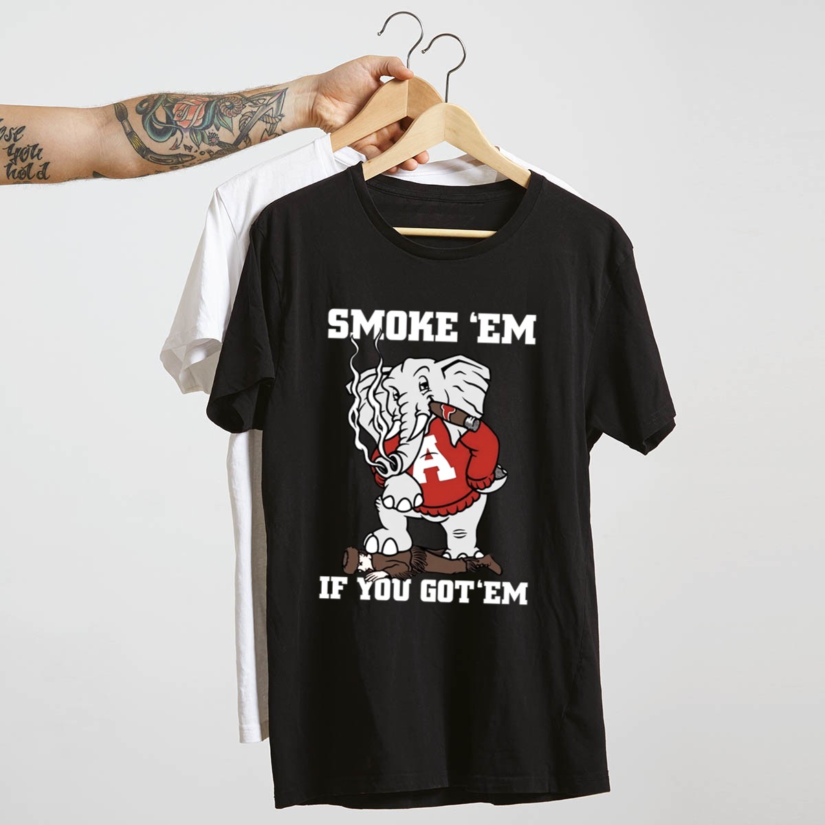 Show your Alabama spirit in style with our Alabama Smoke Em If You Got Em T-Shirt! This fan-made design is perfect for die-hard Crimson Tide supporters, making it an ideal choice for game days, casual outings, or themed events. Crafted for comfort and durability, this shirt is a must-have for anyone looking to showcase their love for Alabama while staying cozy and stylish. Printed right here in the USA, it’s not just a shirt; it’s a statement!