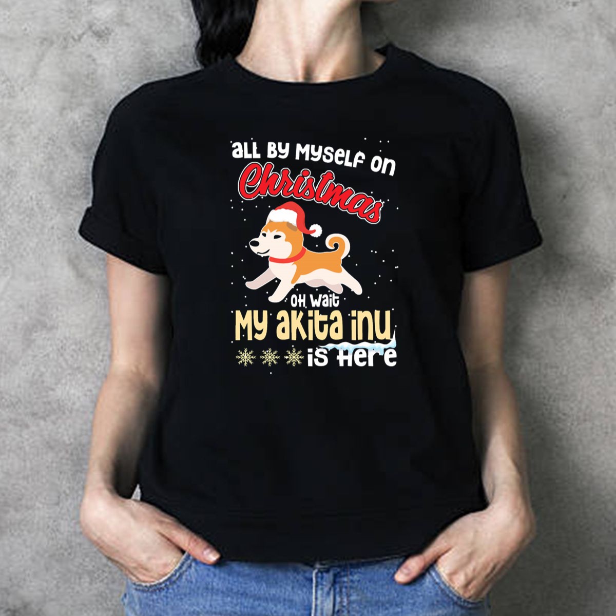 All By Myself On Christmas Oh Wait My Akita Inu Is Here T-Shirt