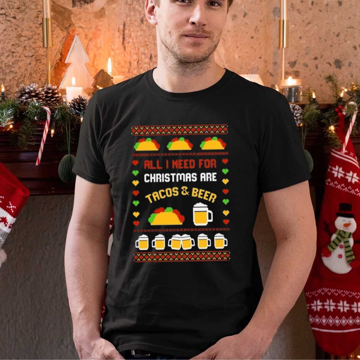 Celebrate the holiday season with a fun twist in our “All I Need For Christmas Are Tacos And Beer” T-shirt! Perfect for taco lovers and beer enthusiasts alike, this festive shirt is ideal for casual gatherings, themed events, or simply spreading holiday cheer. Made for those who enjoy a good laugh and a laid-back vibe, this fan-made design proudly showcases your love for tacos and beer, making it a unique addition to your holiday wardrobe.
