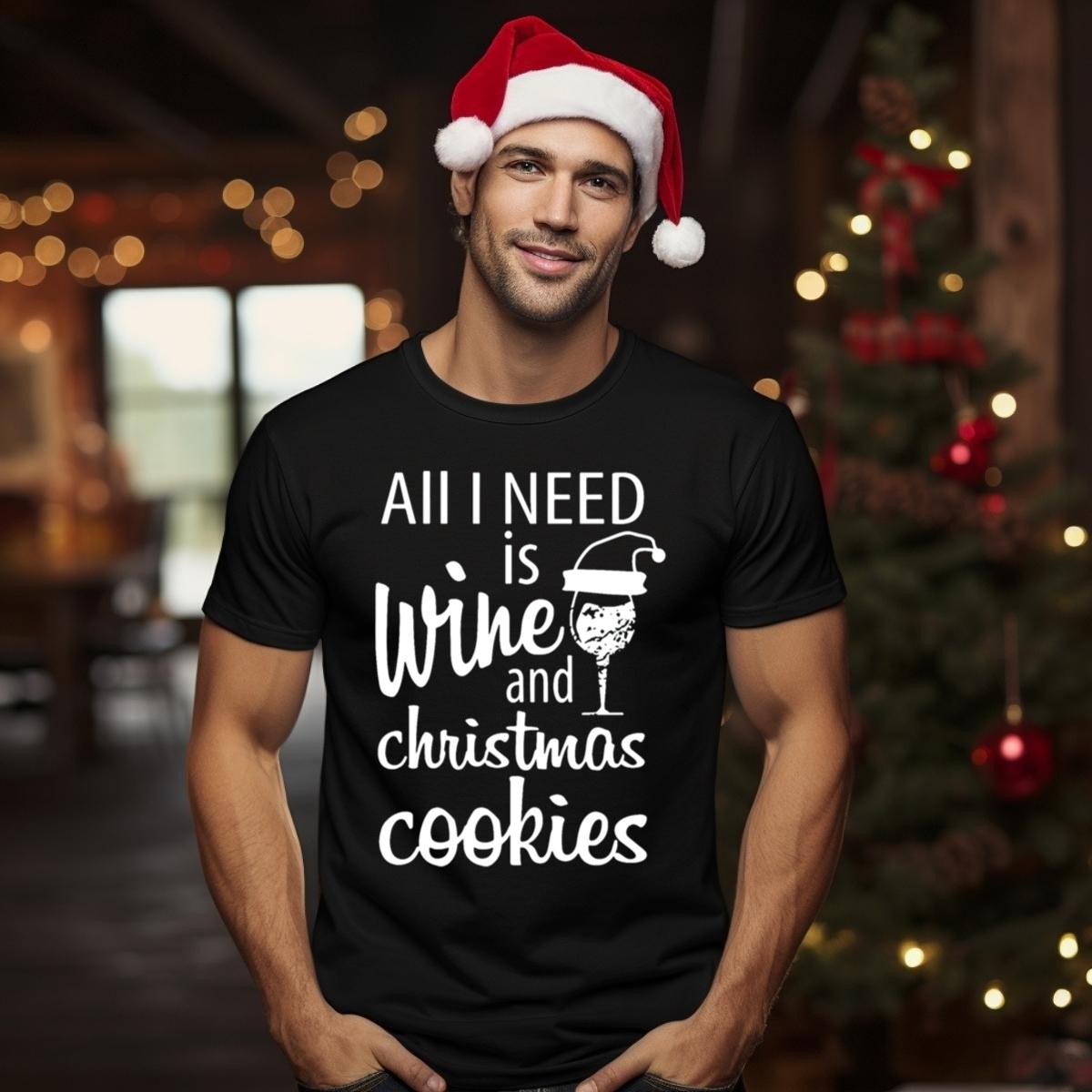 Celebrate the festive season with our charming “All I Need Is Wine And Christmas Cookies” Santa Hat T-Shirt! Perfect for holiday gatherings, cozy nights in, or themed events, this shirt brings a playful twist to your Christmas wardrobe. Designed for those who embrace the joy of the season, it’s a must-have for anyone looking to spread cheer while staying comfortable and stylish. With its fan-made design printed in the USA, this shirt is sure to become a holiday favorite!