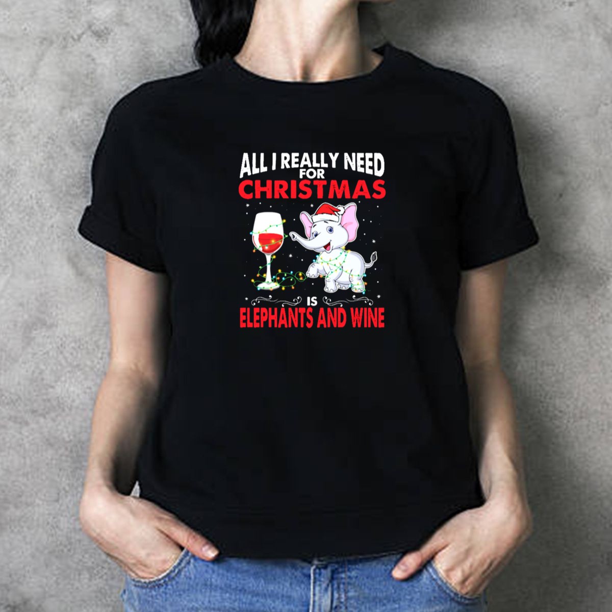 All I Really Need For Christmas Is Elephants And Wine T Shirt